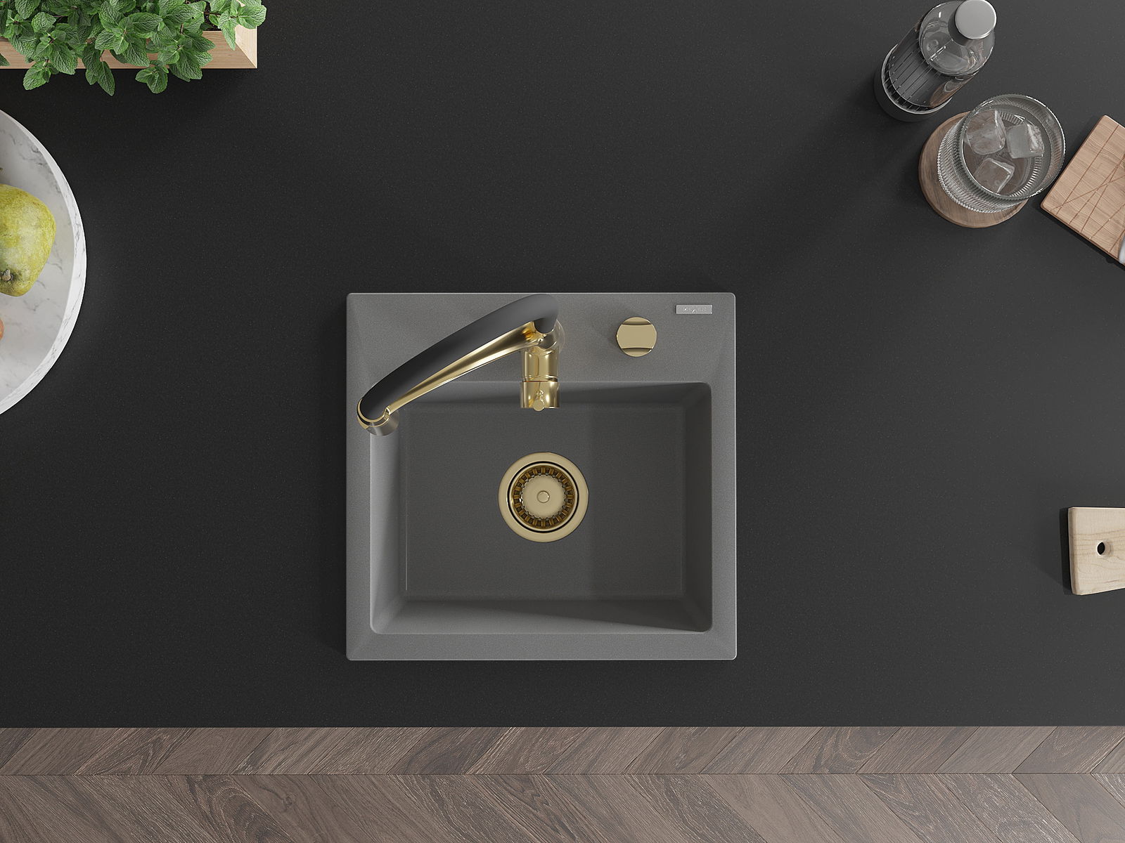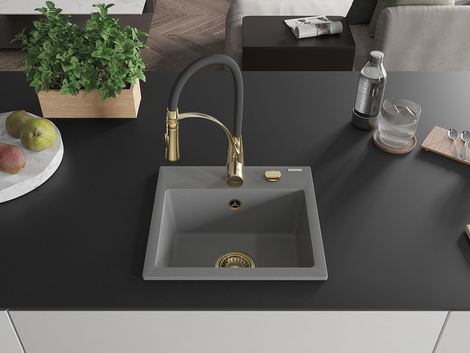 Mexen Milo 1 kameru granīta izlietne ar virtuves jaucējkrānu Aster, pelēka - 6505-71-73450-57-G