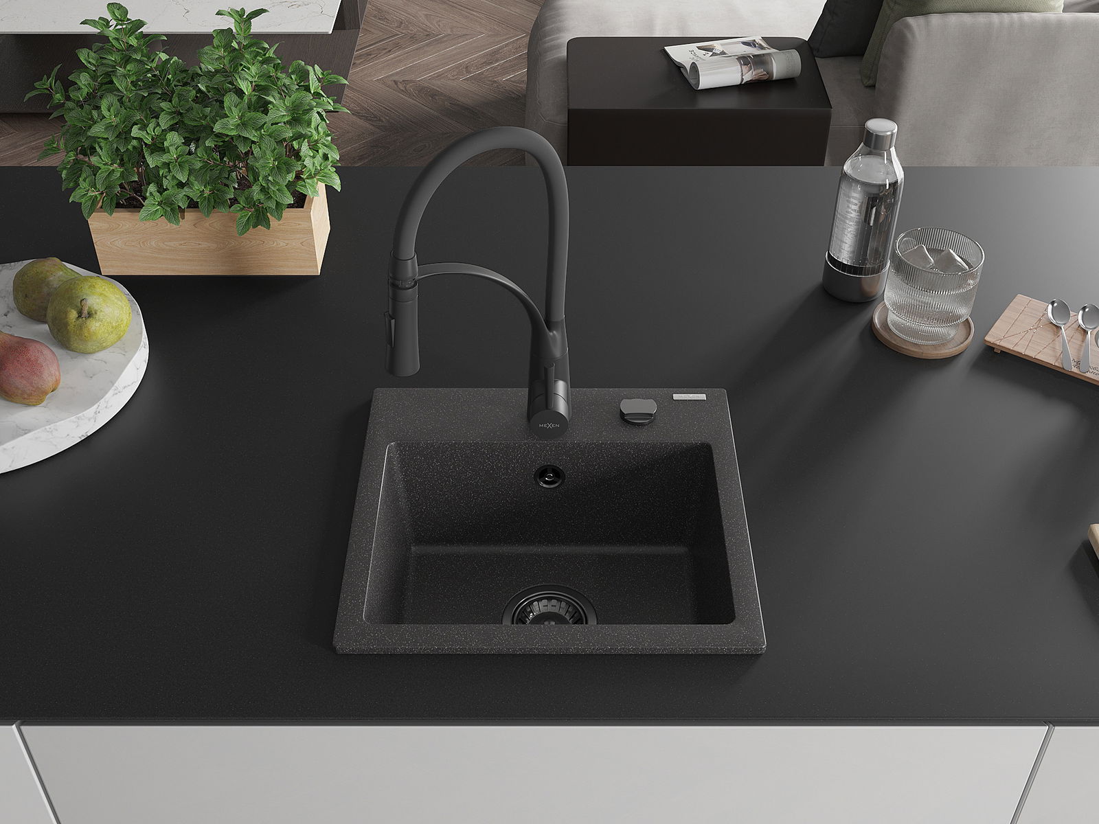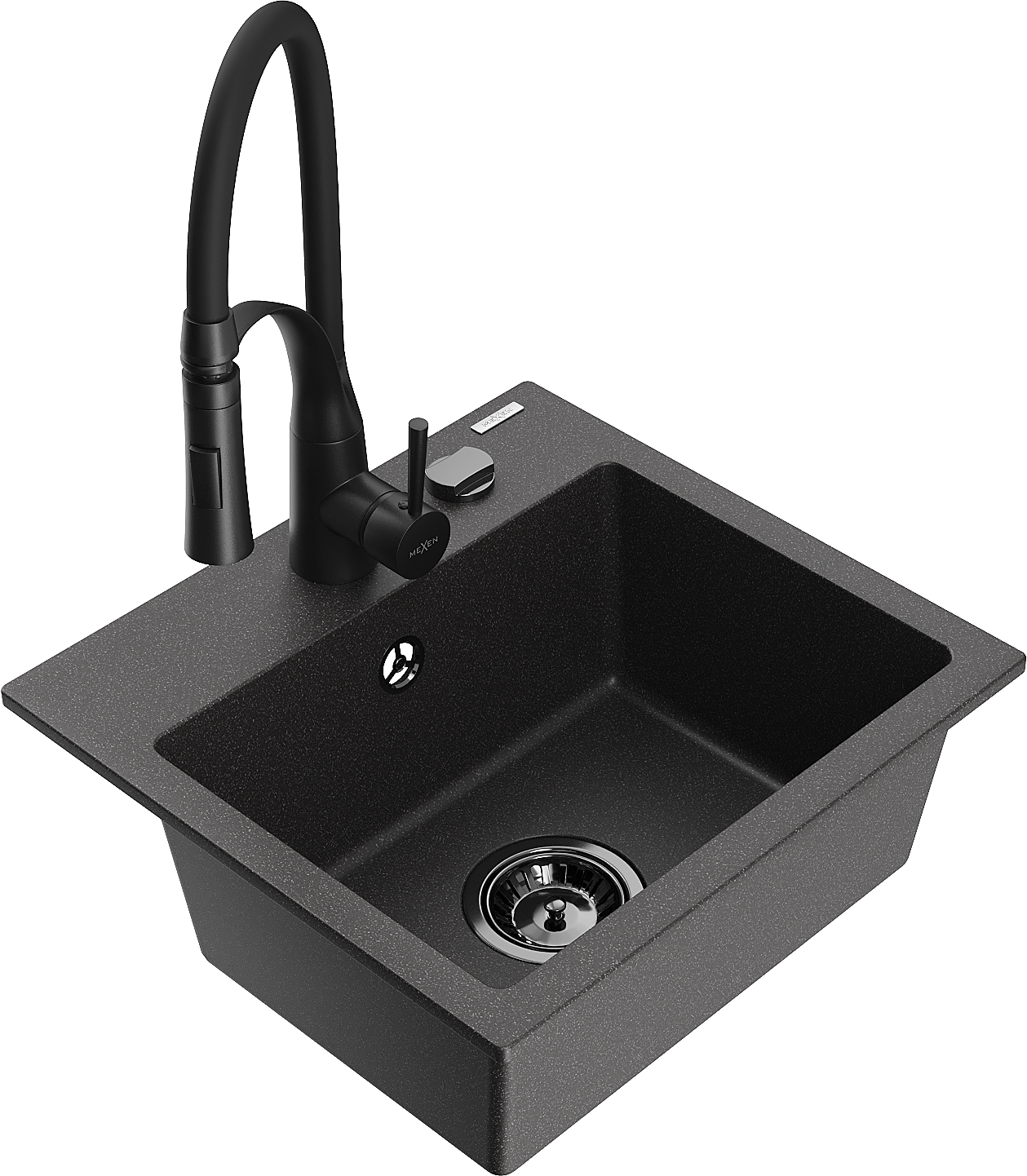 Mexen Milo granit izlietne ar 1 nodalījumu un virtuves jaucējkrānu Aster, melna ar punktiem - 6505-76-73450-70-B