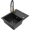 Mexen Enzo granit izlietne ar vienu nodalījumu un noteces virsmu, un virtuves jaucējkrānu Aster, balts - 6506-20-73450-57-B
