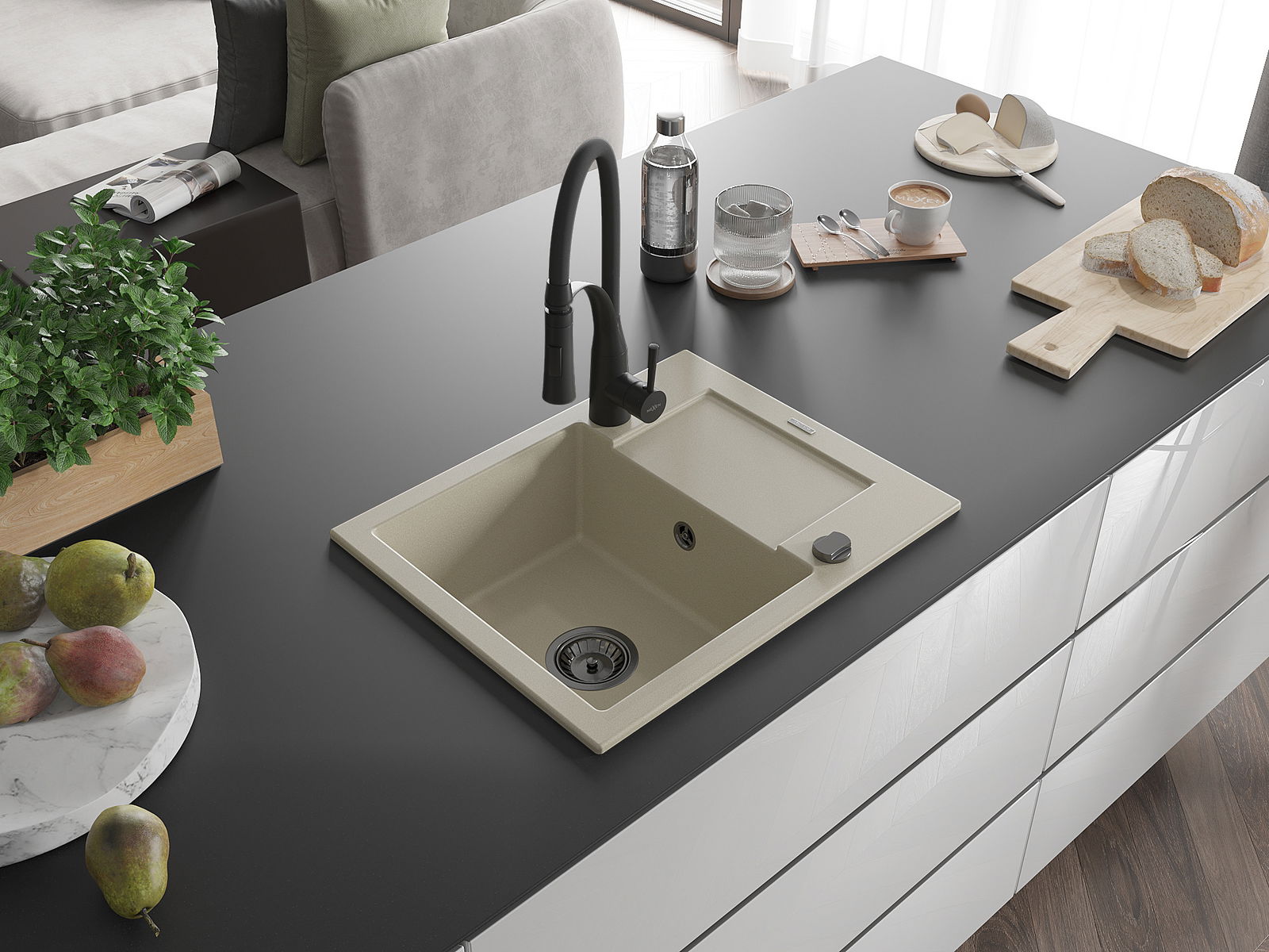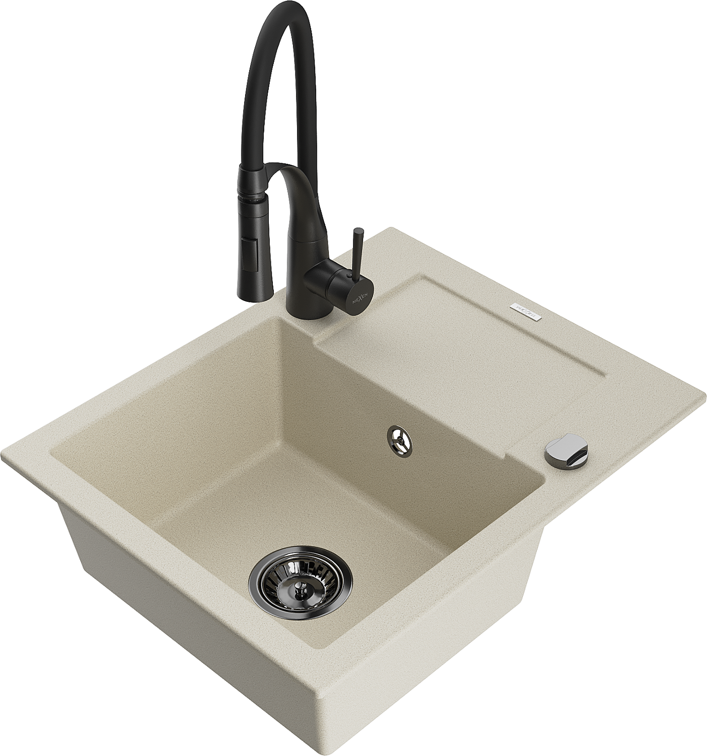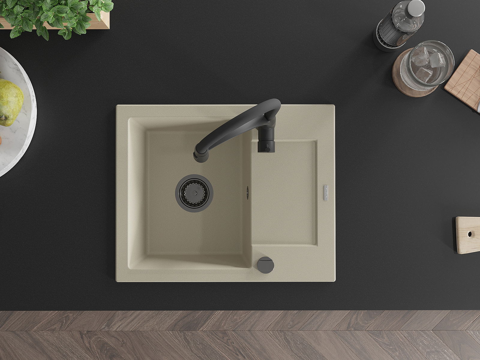 Mexen Enzo granitizlietne viena nodalījuma ar noteku un virtuves jaucējkrānu Aster, bēšs - 6506-69-73450-70-B