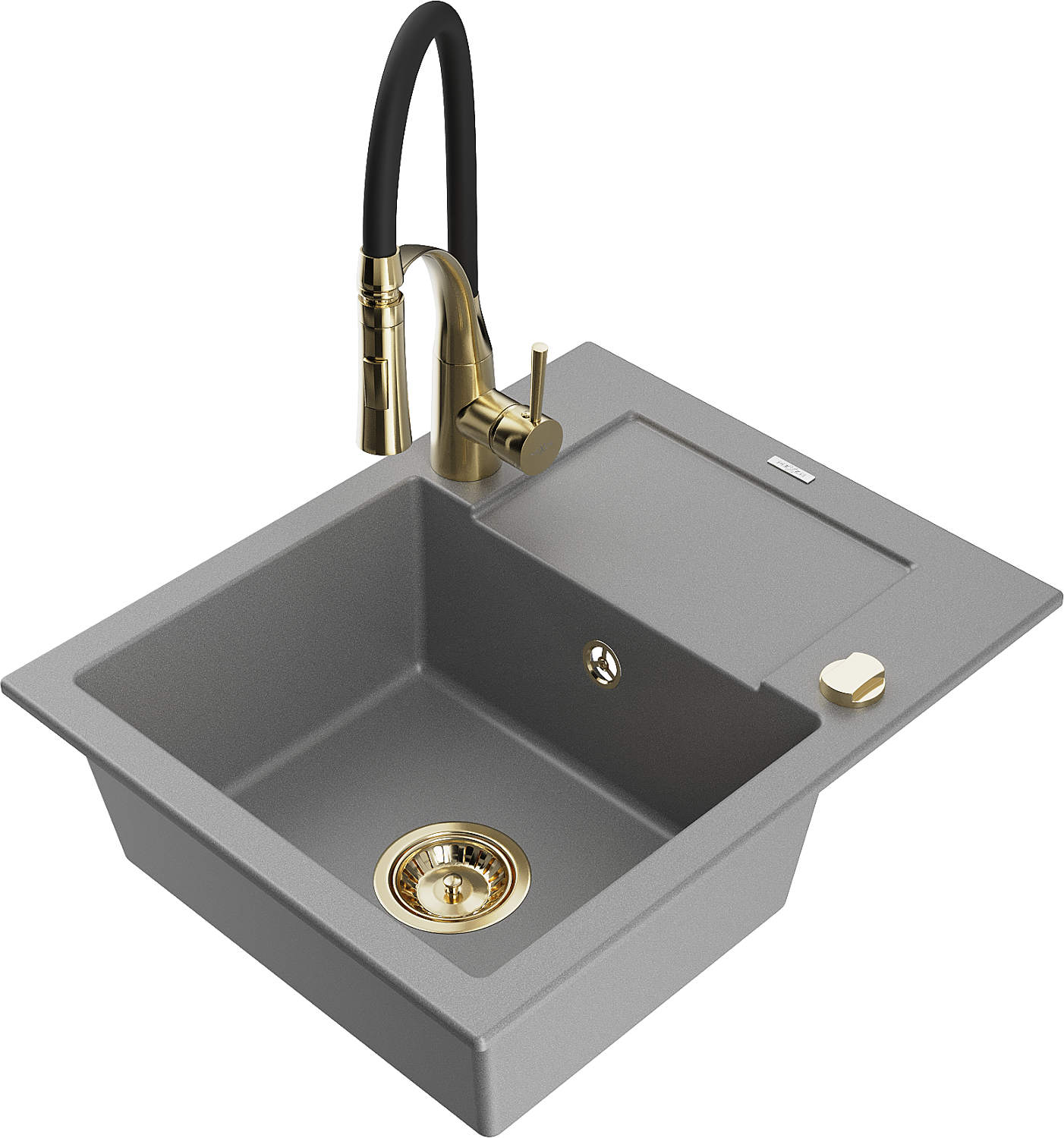 Mexen Enzo viena nodalījuma granīta izlietne ar noteces un virtuves jaucējkrānu Aster, pelēka - 6506-71-73450-57-G