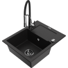 Mexen Enzo granitē izlietne ar vienu kameru un noteku, un virtuves jaucējkrānu Aster, melns ar švīkām - 6506-76-73450-07-B