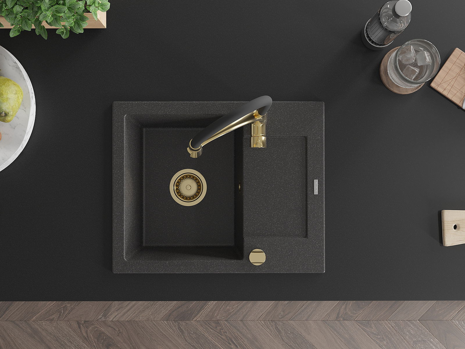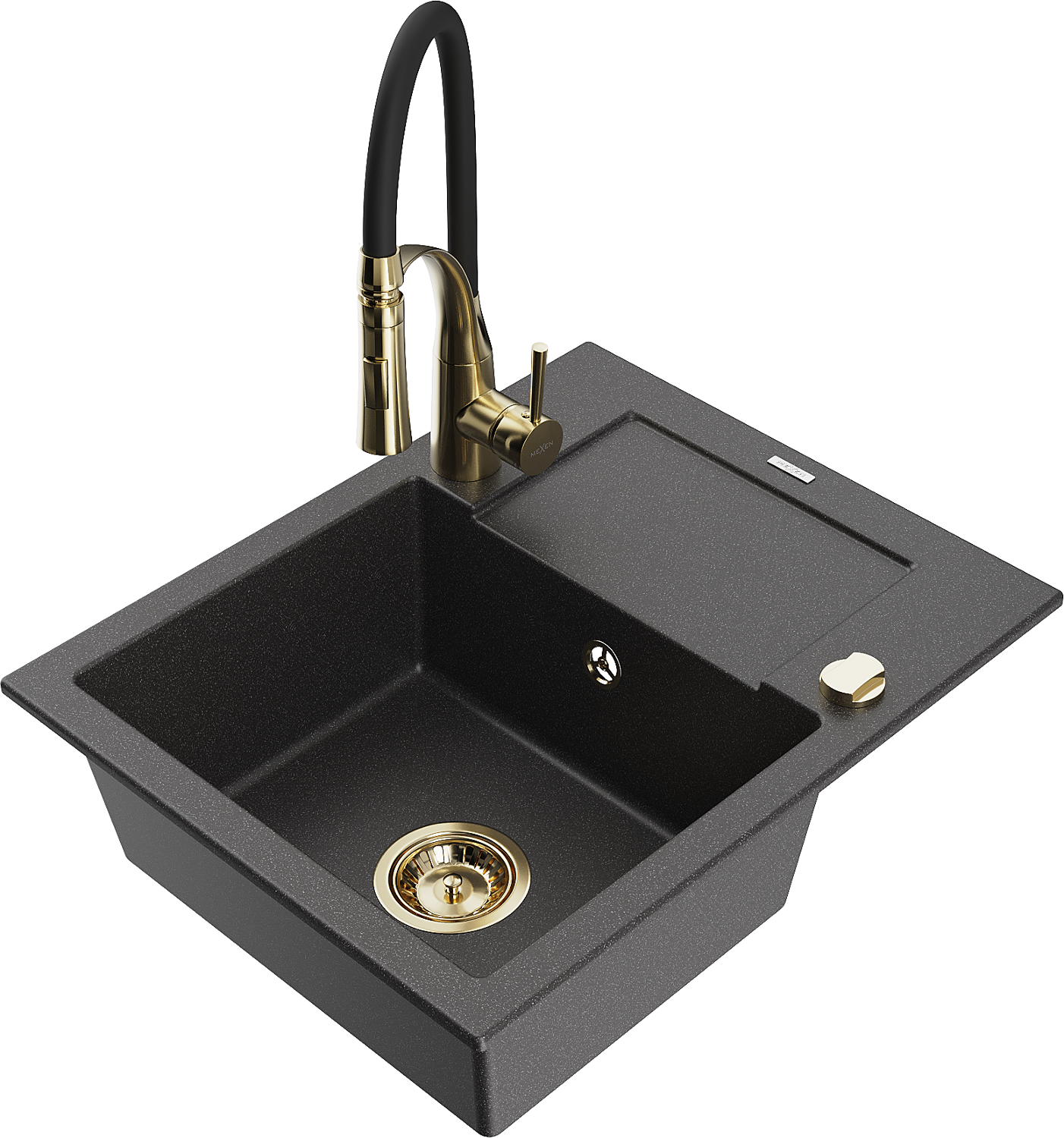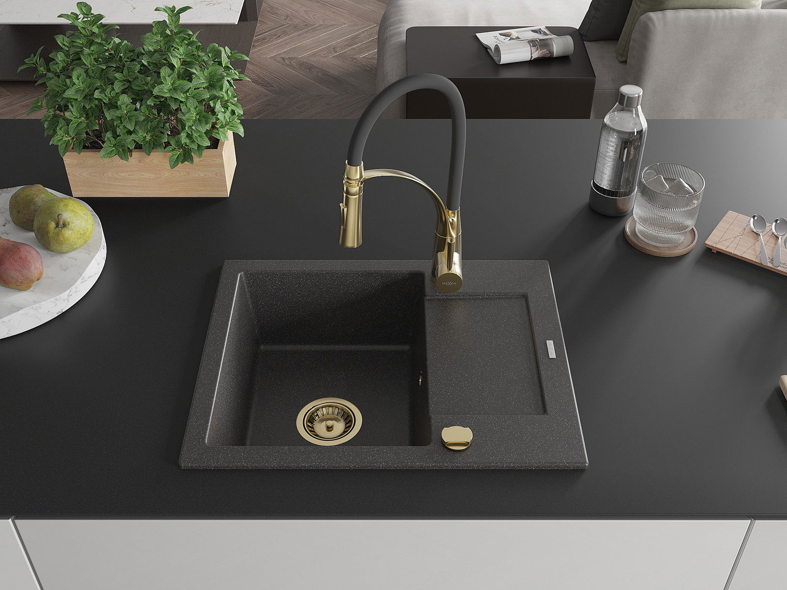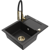 Mexen Enzo granitā izlietne 1 nodalījums ar noteci un virtuves jaucējkrānu Aster, melns raibs - 6506-76-73450-57-G
