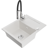 Mexen Enzo granīta izlietne ar 1 nodalījumu ar notecējuma plaukti un virtuves jaucējkrānu Aster, melns - 6506-77-73450-07