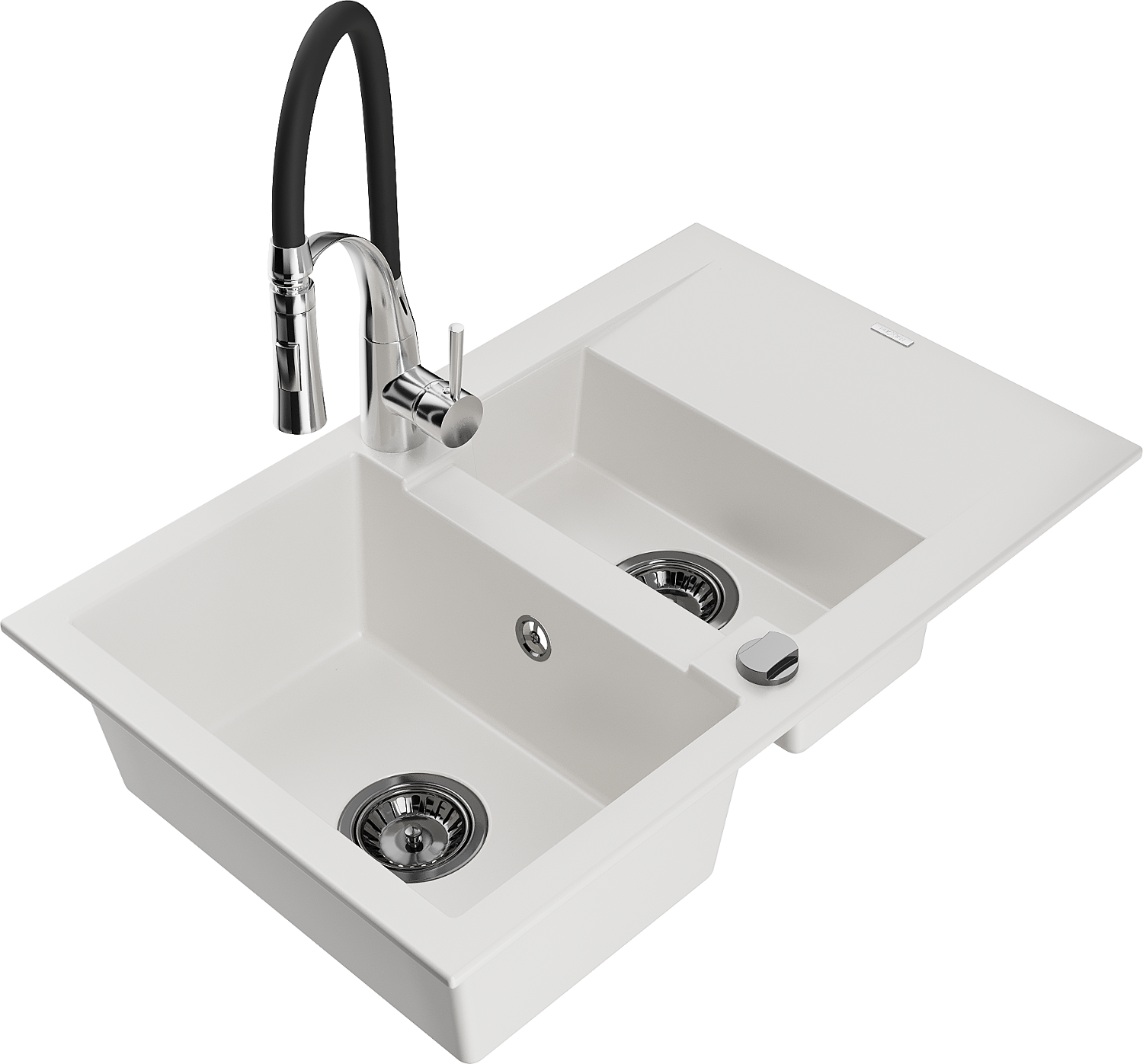 Mexen Gaspar Granīta izlietne ar 1,5 nodalījumiem ar notekas un virtuves jaucējkrānu Aster, balts - 6507-20-73450-07-B