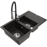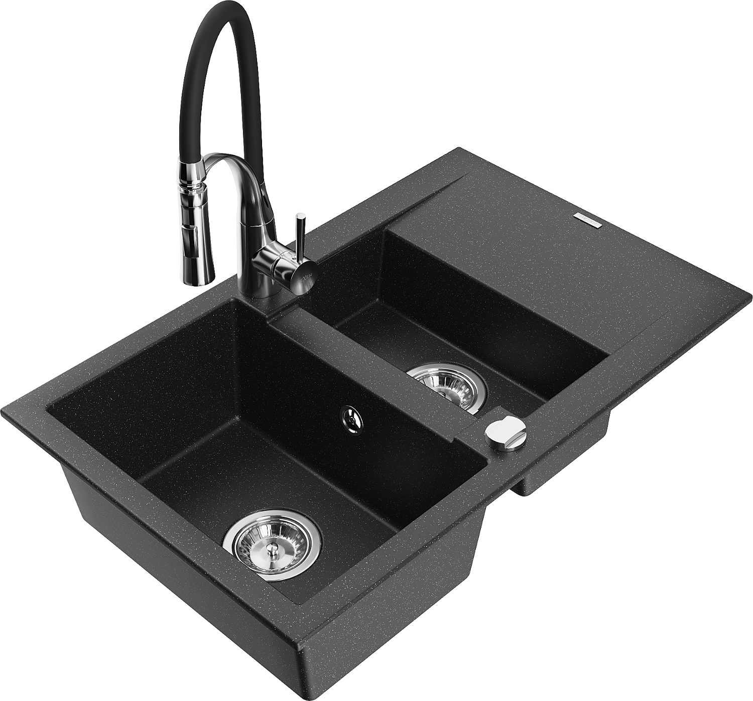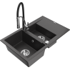 Mexen Gaspar granitizlietne ar 1,5 nodalījumiem ar drenāžas sadaļu un virtuves jaucējkrānu Aster, melns/sudraba metālika