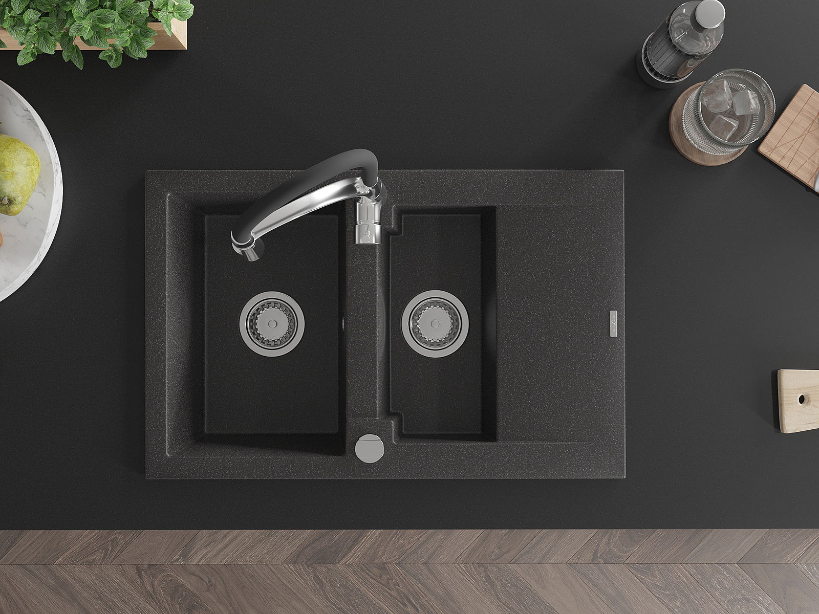 Mexen Gaspar granitē izlietne ar 1,5 nodalījumiem un notekpaplāti, un virtuves jaucējkrānu Aster, melna raiba - 6507-76-73450-07