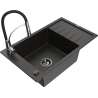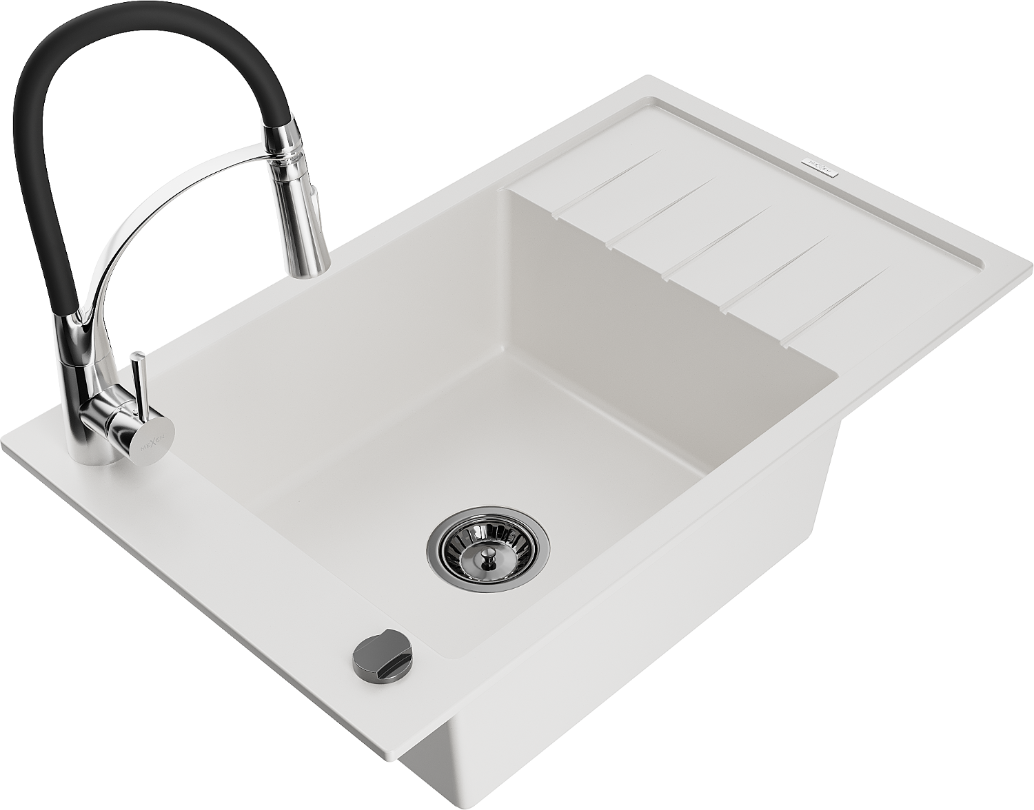Mexen Elias granīta izlietne ar vienu nodalījumu un notekpaplāti un virtuves jaucējkrānu Aster, balts - 6511-20-73450-07-B