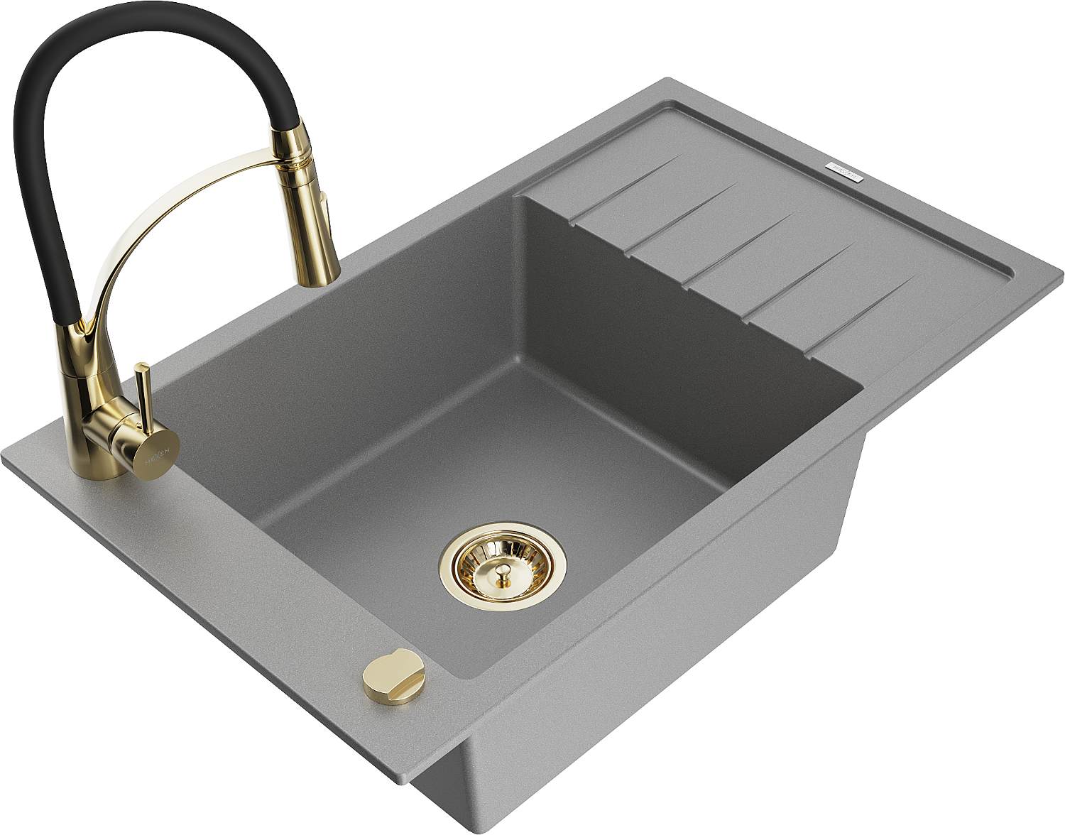 Mexen Elias 1-kameru granīta izlietne ar noteces paneli un virtuves jaucējkrānu Aster, pelēka - 6511-71-73450-57-G
