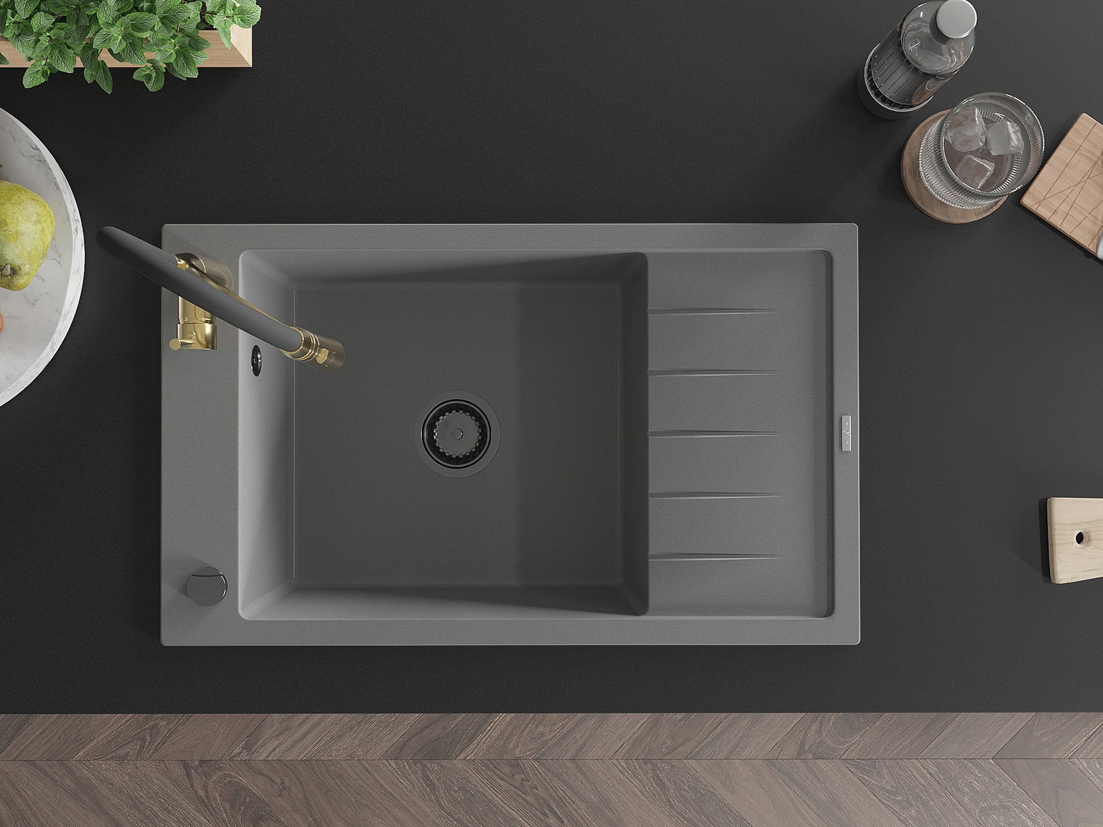 Mexen Elias granitizlietne ar 1 nodalījumu, noteces un virtuves jaucējkrānu Aster, pelēka - 6511-71-73450-57-B
