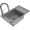 Mexen Elias granitizlietne 1 kameru ar noteku un virtuves jaucējkrānu Aster, melns/sudraba metālisks - 6511-73-73450-07-B