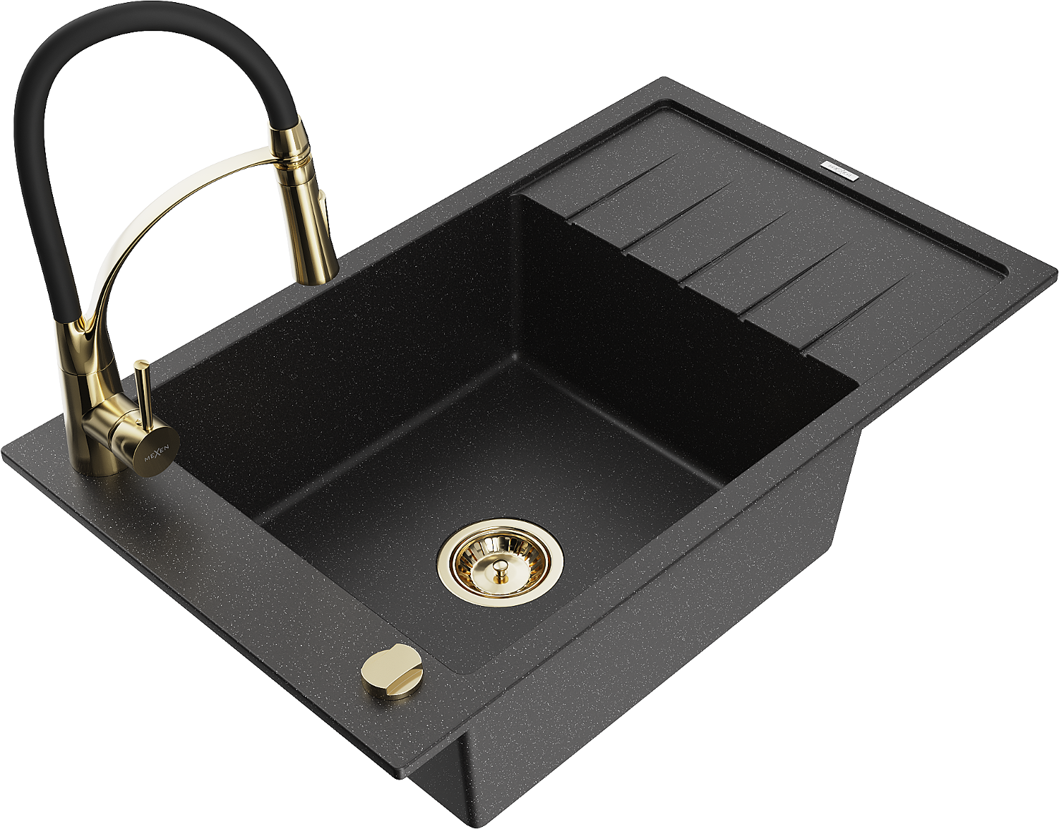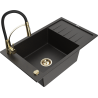 Mexen Elias vienkameras granīta izlietne ar noteku un virtuves jaucējkrānu Aster, melns/sudraba metālika