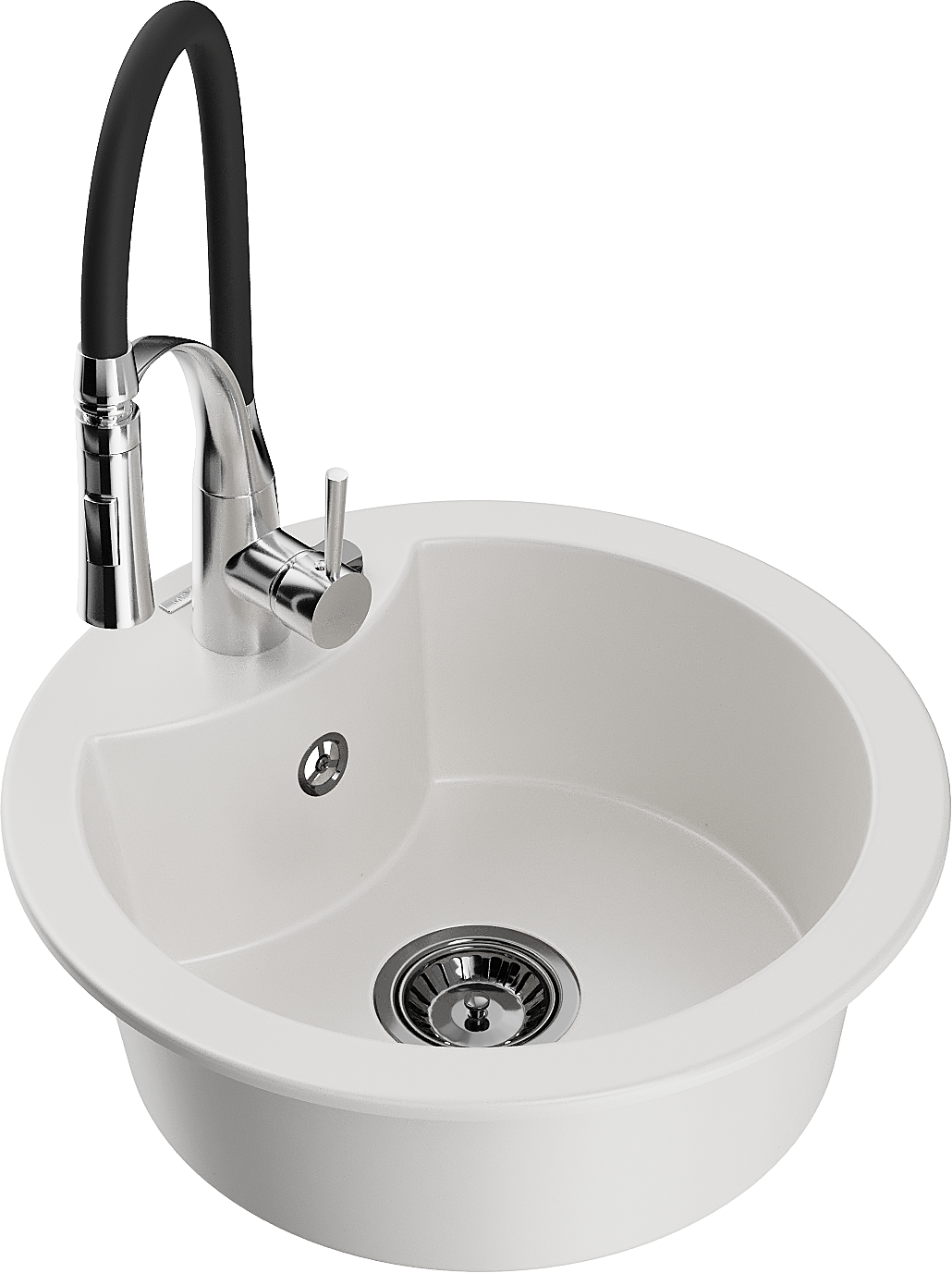 Mexen Diego vienas granīta izlietnes nodalījums ar virtuves jaucējkrānu Aster, balts - 6512-20-73450-07-B