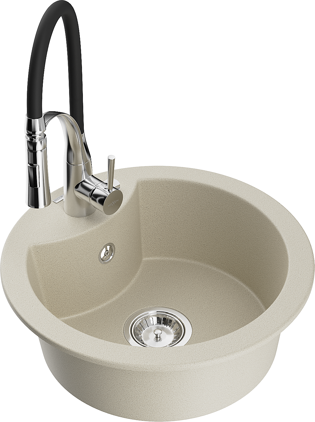 Mexen Diego granitizlietne ar 1 nodalījumu un virtuves jaucējkrānu Aster, bēša - 6512-69-73450-07