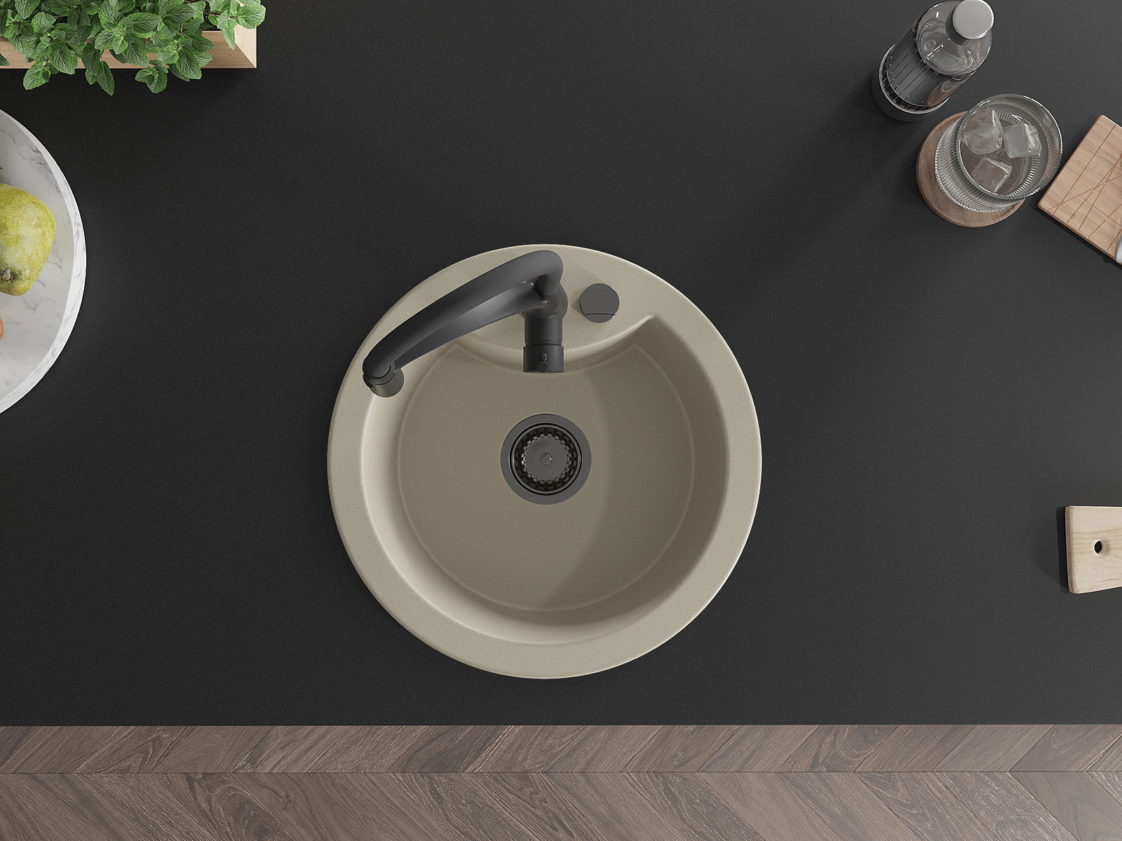 Mexen Diego granitā izlietne ar 1 nodalījumu un virtuves jaucējkrānu Aster, bēša - 6512-69-73450-70-B