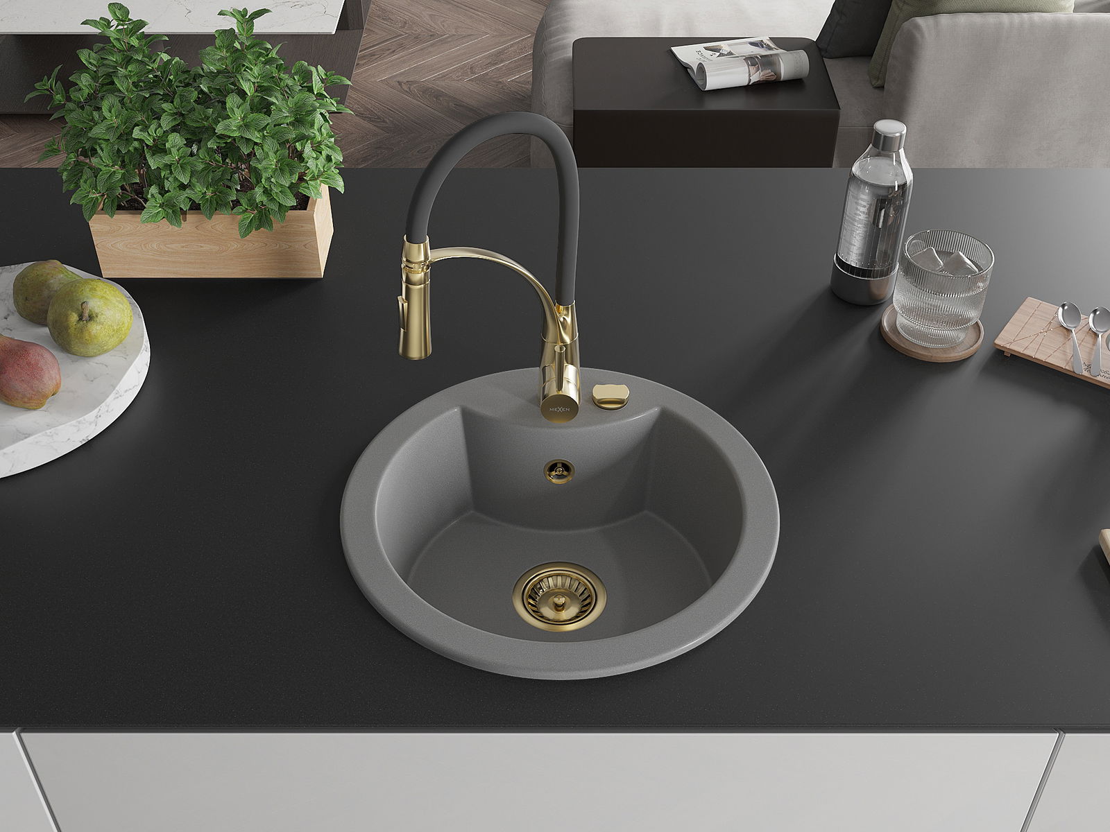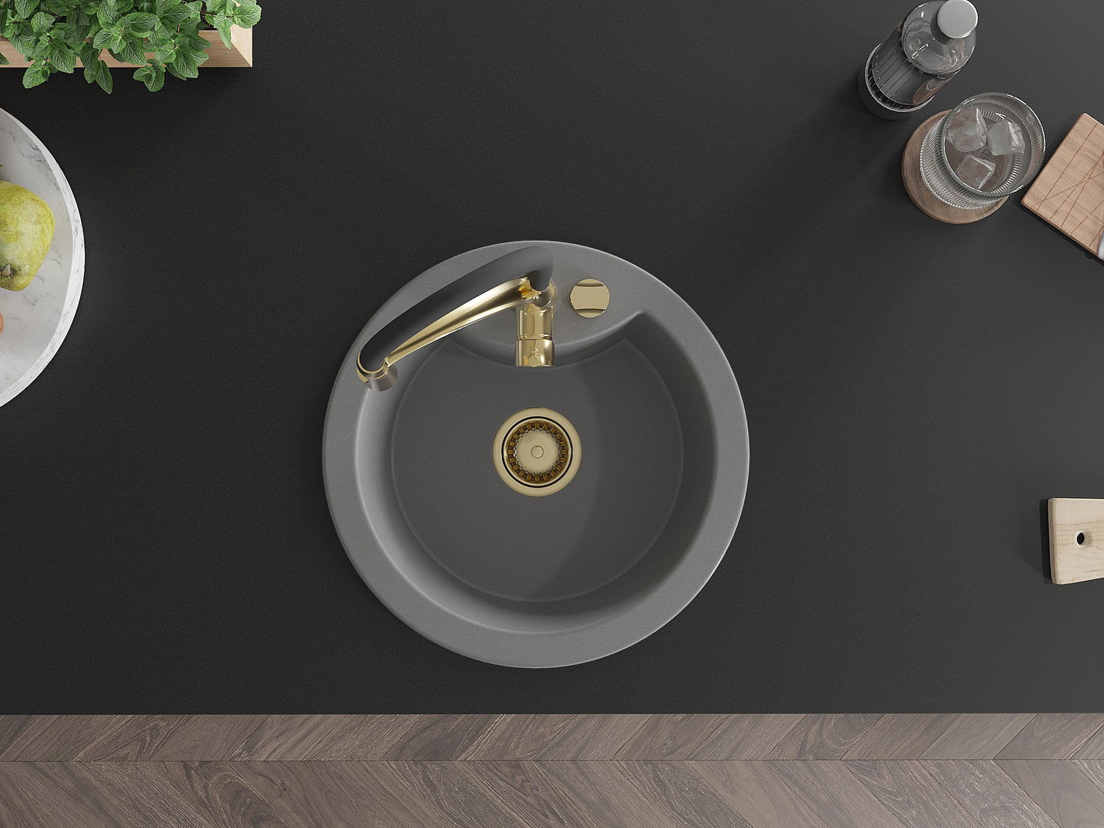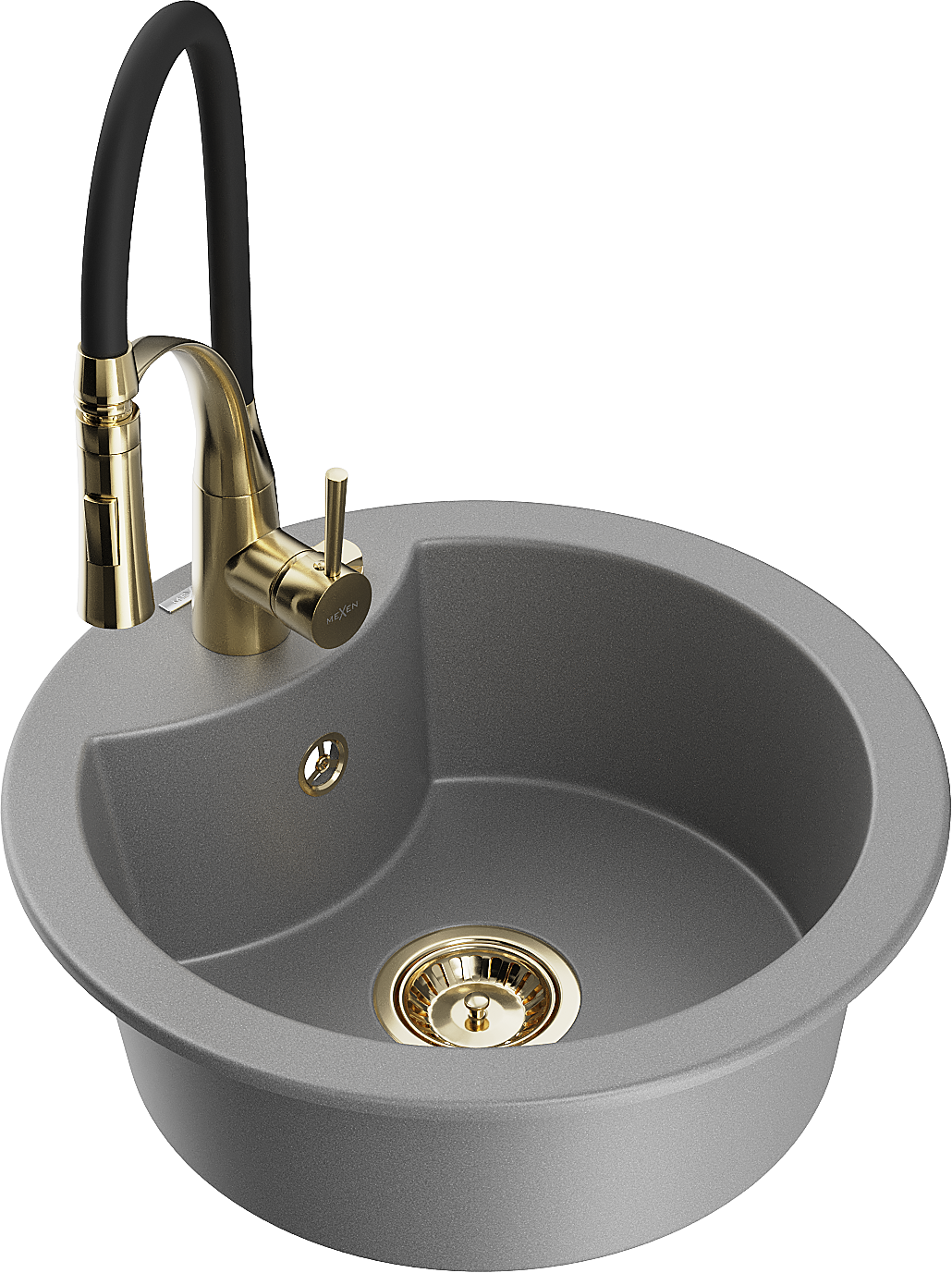 Mexen Diego granīta izlietne ar 1 nodalījumu un virtuves krānu Aster, pelēka - 6512-71-73450-57-G