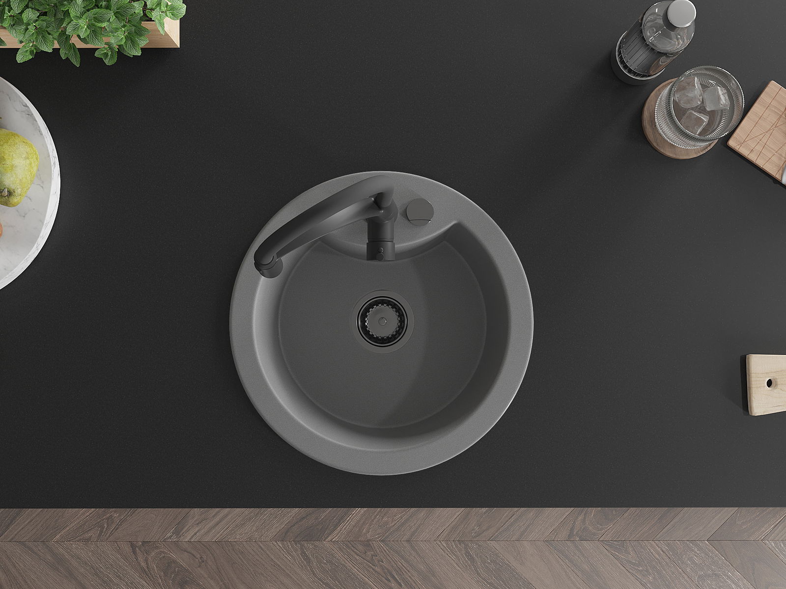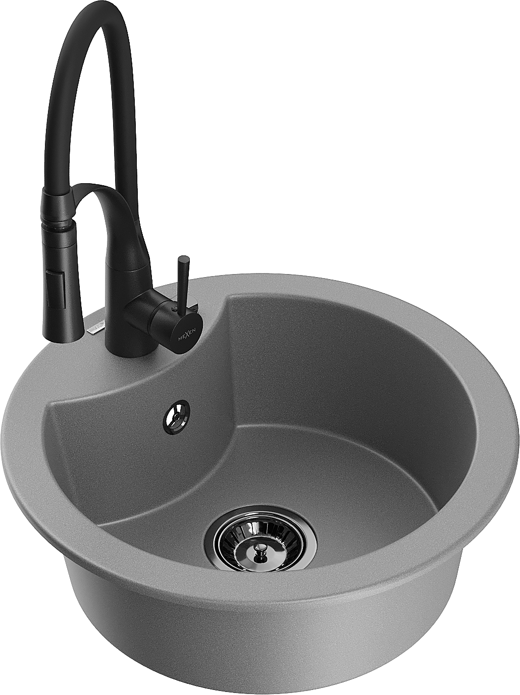 Mexen Diego granitizlietne ar vienu kameru ar virtuves krānu Aster, pelēka - 6512-71-73450-70-B