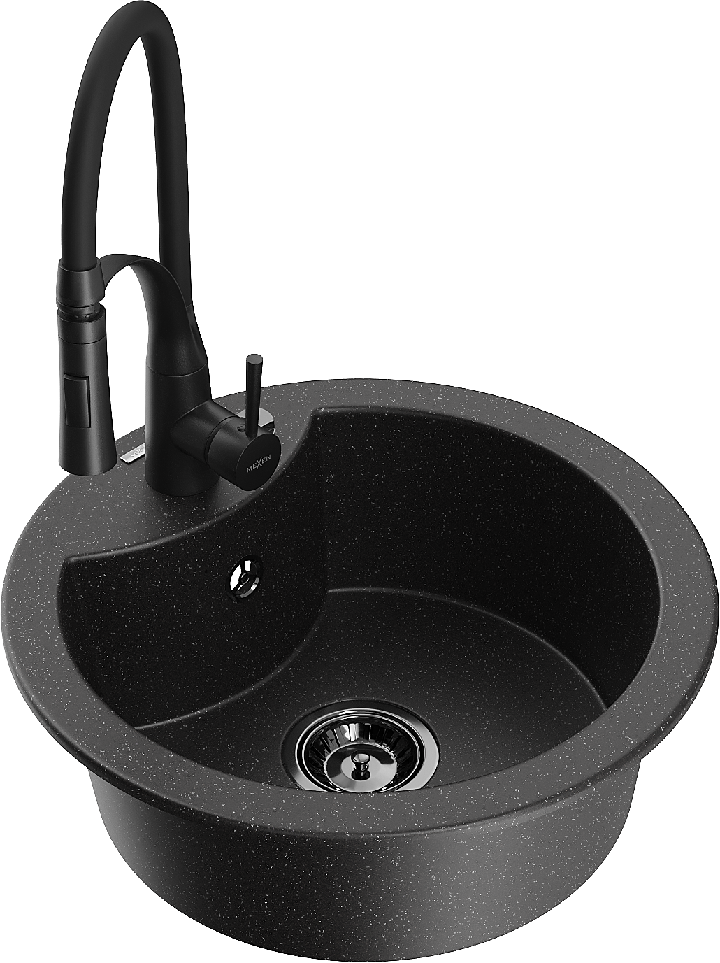 Mexen Diego granitizlietne 1-kameras ar virtuves jaucējkrānu Aster, melns/sudraba metāliskais - 6512-73-73450-70-B