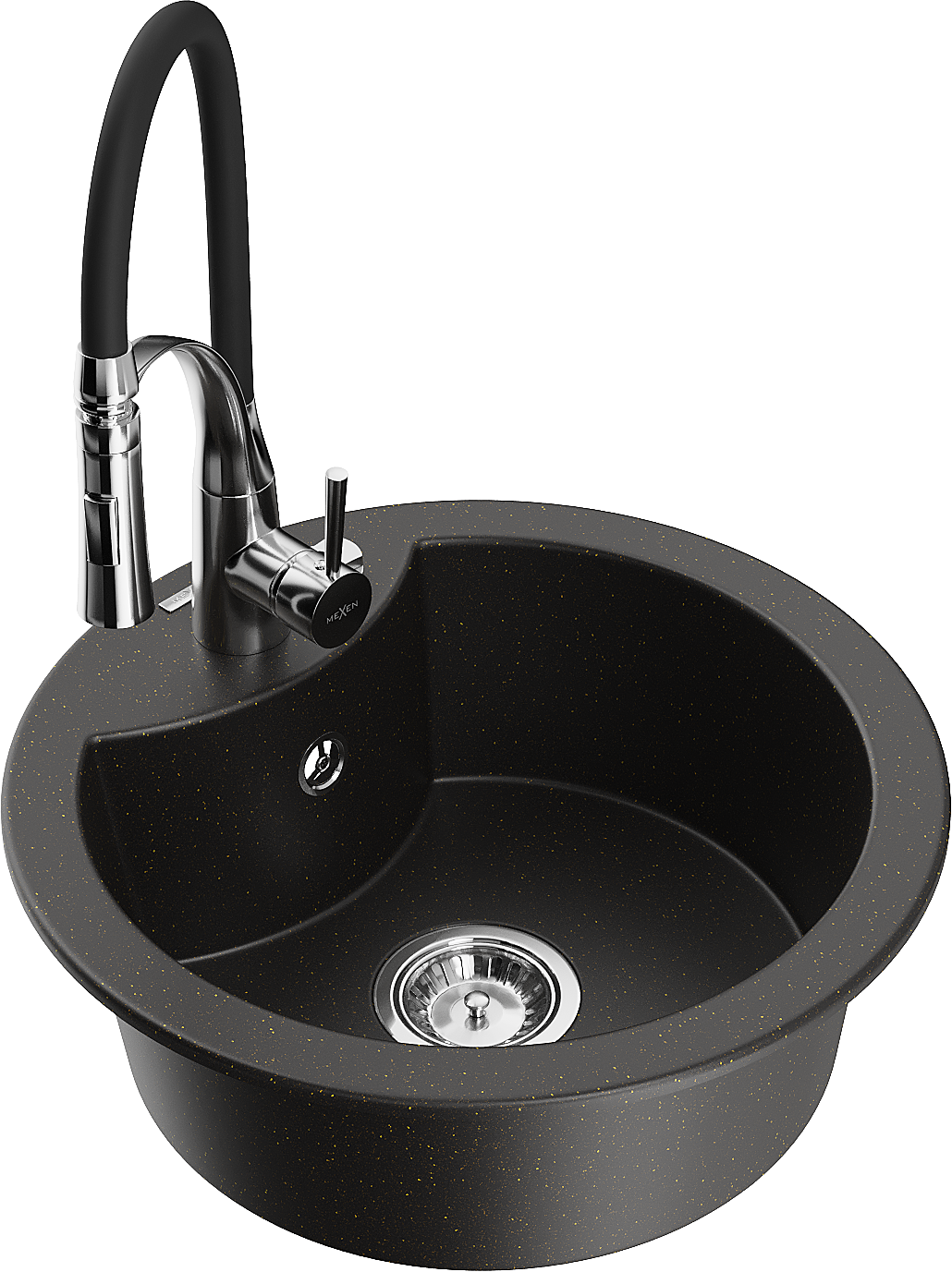 Mexen Diego granitē izlietne ar 1 nodalījumu un Aster virtuves jaucējkrānu, melns/zelta metālisks - 6512-75-73450-70