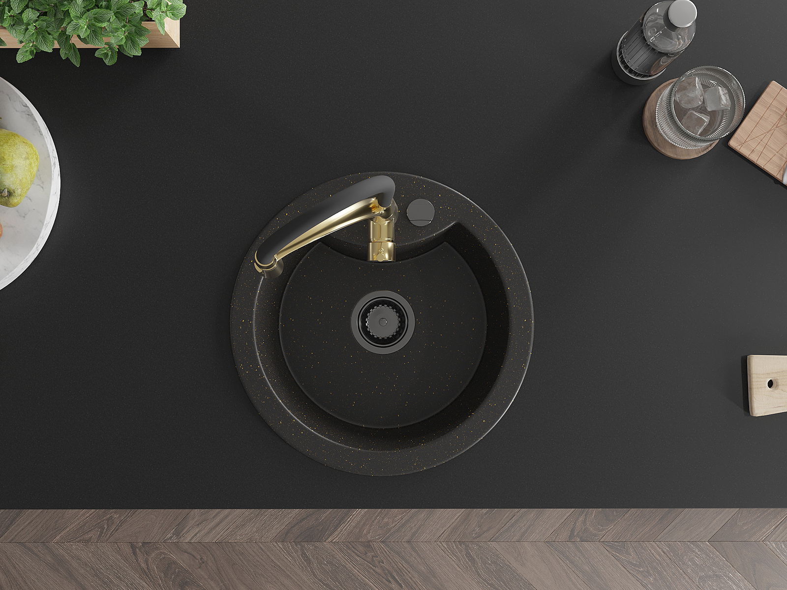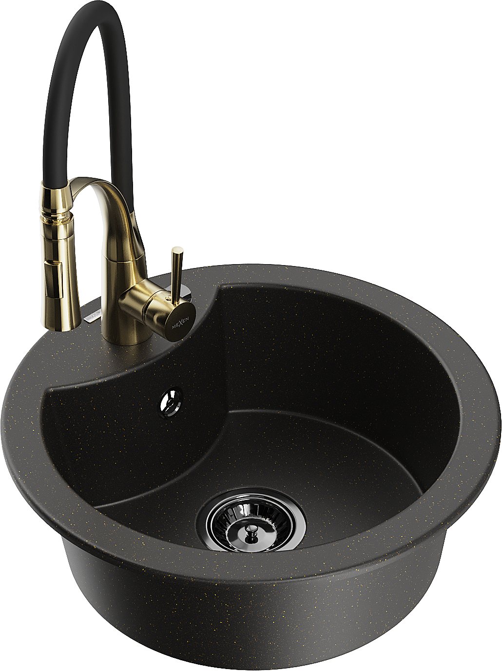 Mexen Diego granitizlietne 1-nodaļīga ar virtuves jaucējkrānu Aster, melns/zeltains metāliskais - 6512-75-73450-57-B