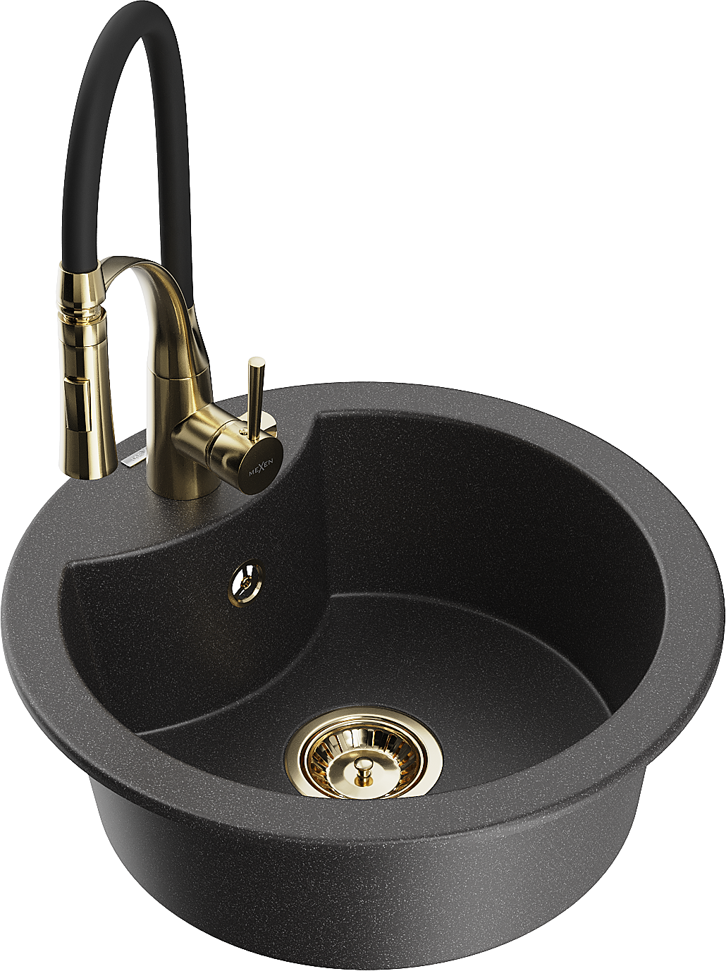 Mexen Diego vienas granīta izlietnes nodalījums ar virtuves jaucējkrānu Aster, melns ar plankumiem - 6512-76-73450-57-G