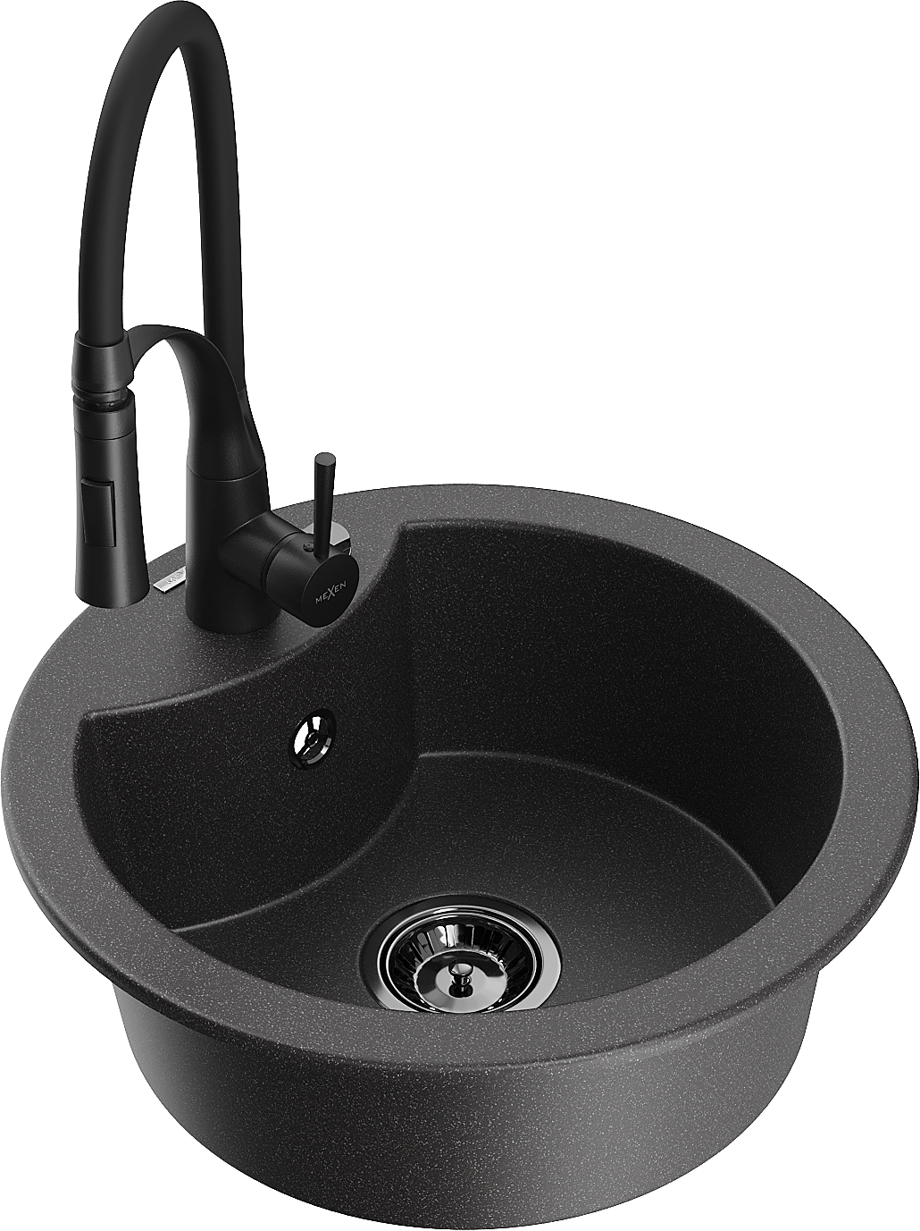 Mexen Diego granitss viena kameru izlietne ar virtuves jaucējkrānu Aster, melns raibs - 6512-76-73450-70-B