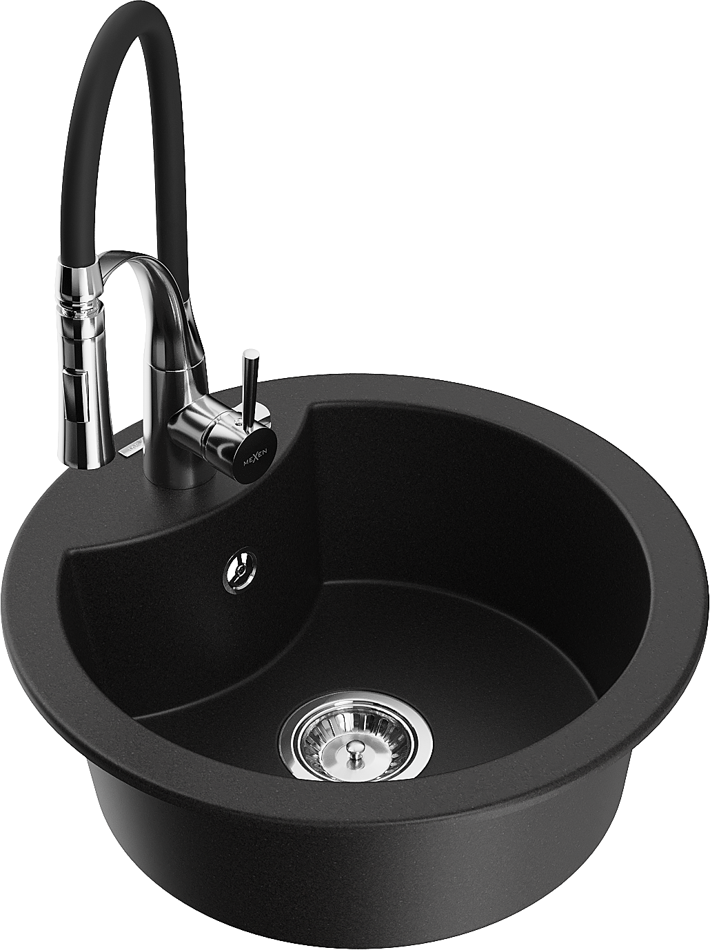 Mexen Diego granitizlietne ar vienu nodalījumu un virtuves jaucējkrānu Aster, melna - 6512-77-73450-07