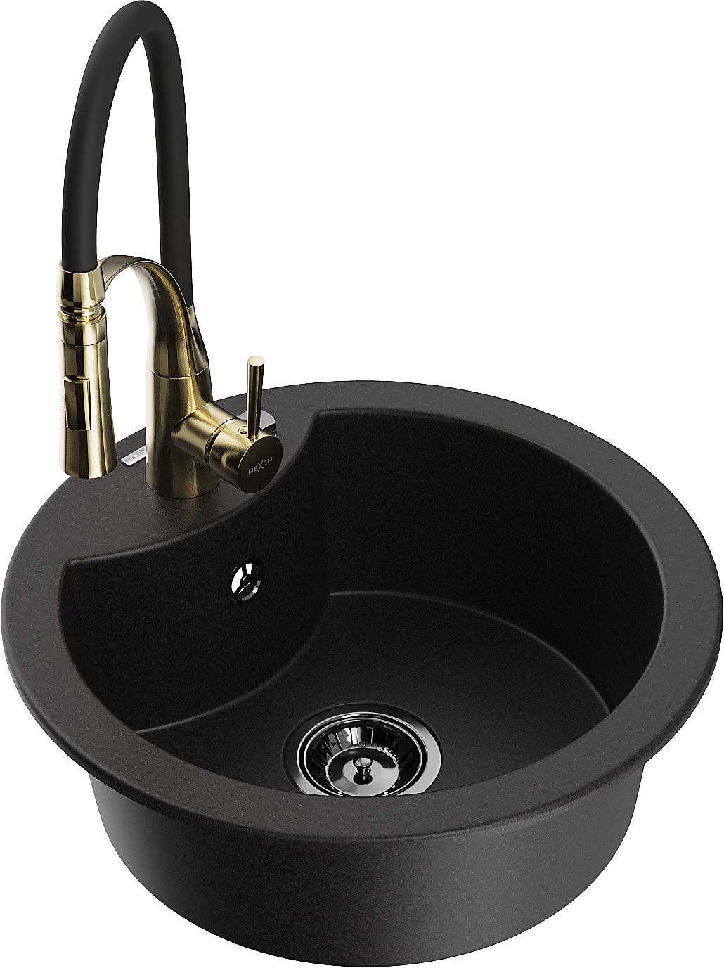 Mexen Diego 1-kamērā granīta izlietne ar virtuves krānu Aster, melns - 6512-77-73450-57-B