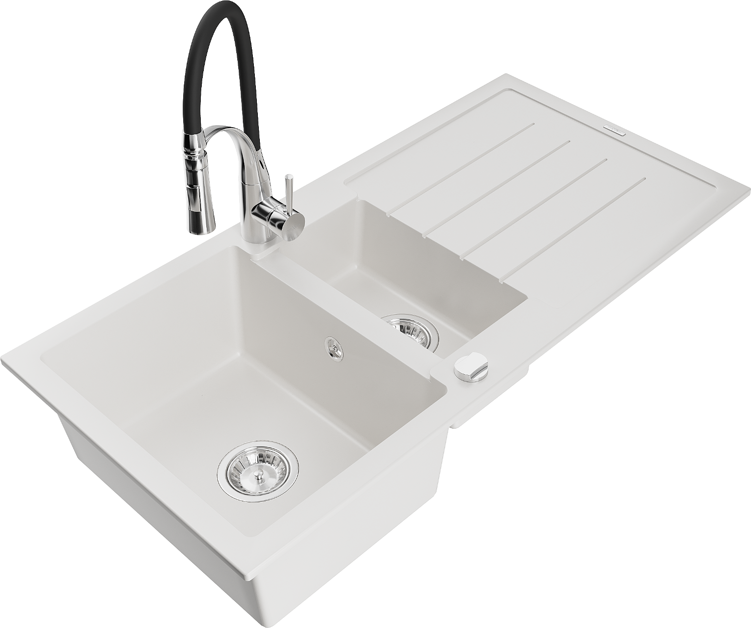 Mexen Andres granitizlietne ar 1,5 nodalījumiem, ar notecētāju un virtuves krānu Aster, balts - 6515-20-73450-07
