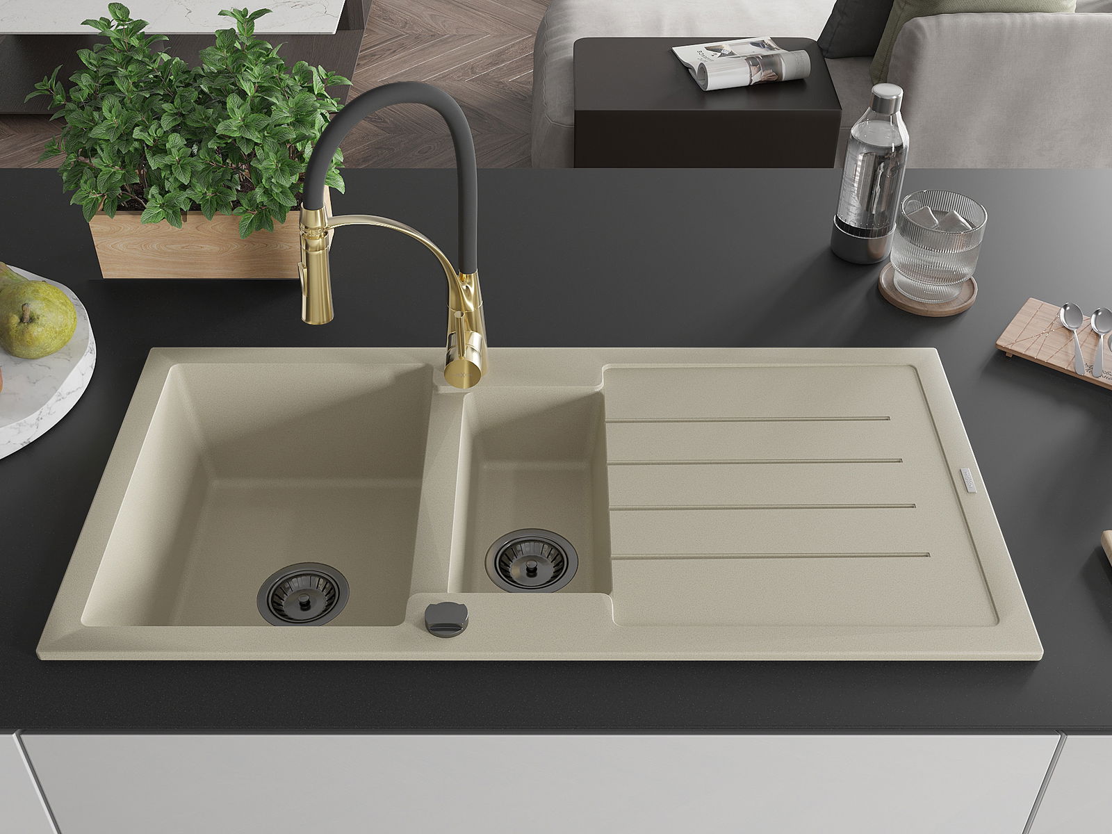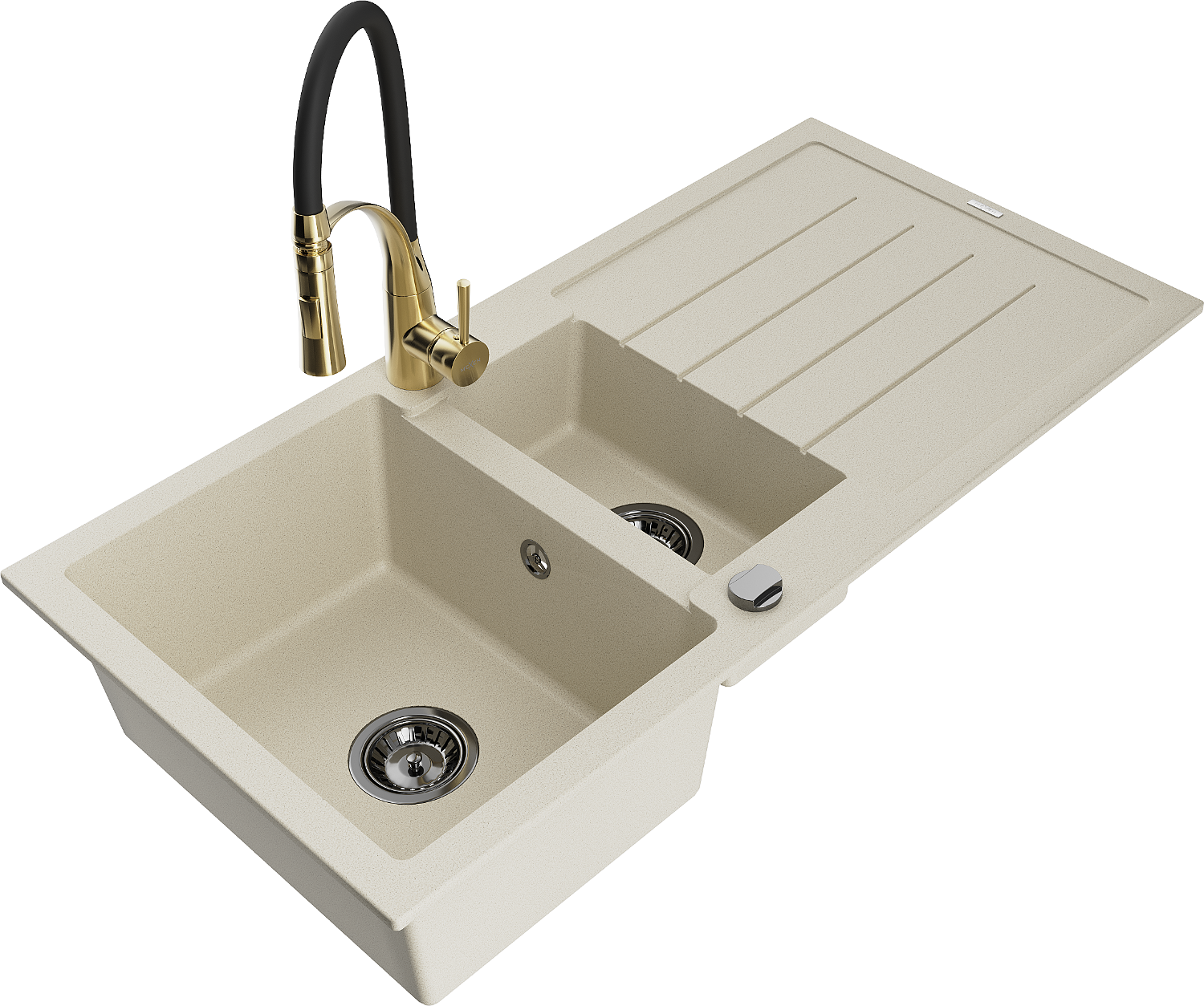 Mexen Andres granitais izlietne ar 1,5 kameru, ar drenāžu un virtuves jaucējkrānu Aster, bēšs - 6515-69-73450-57-B