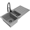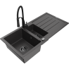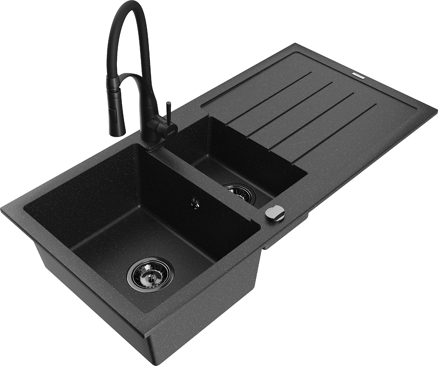 Mexen Andres granit izlietne ar 1,5 nodalījumiem ar drenāžu un Aster virtuves jaucējkrānu, melna/sudraba