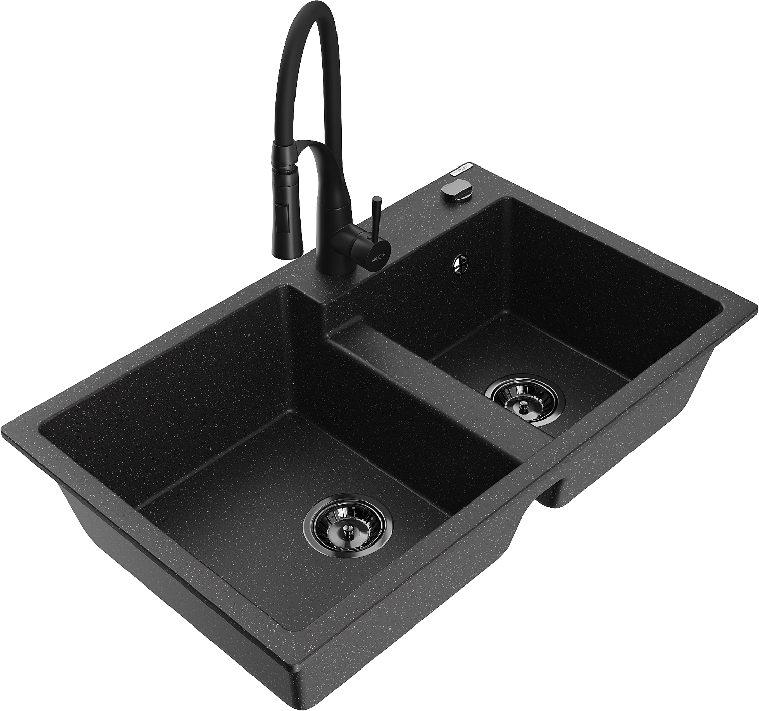 Mexen Tomas granitizlietne ar 2 nodalījumiem un virtuves jaucējkrānu Aster, melns/sudraba metālika - 6516-73-73450-70-B