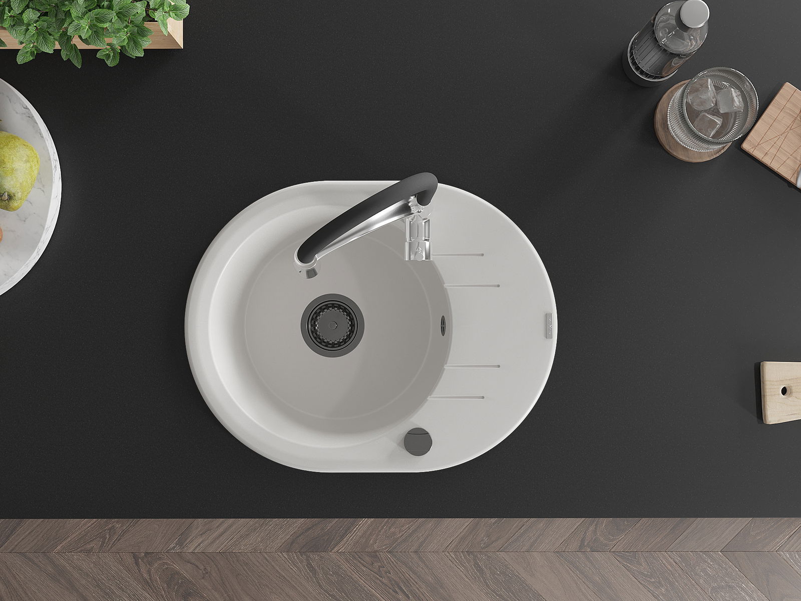 Mexen Kevin granitizlietne 1-kameru ar noteci un virtuves jaucējkrānu Aster, balts - 6517-20-73450-07-B