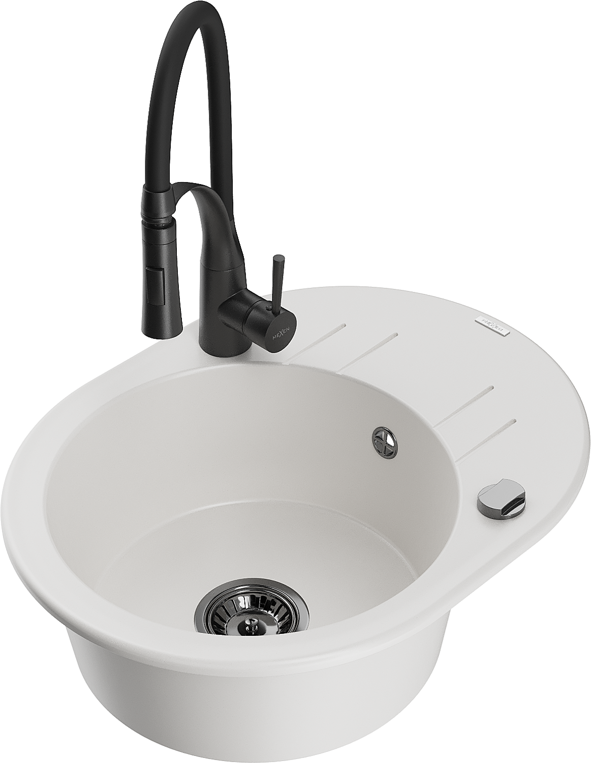 Mexen Kevin granitizlietne 1-kameras ar notecinātāju un virtuves jaucējkrānu Aster, balts - 6517-20-73450-70-B