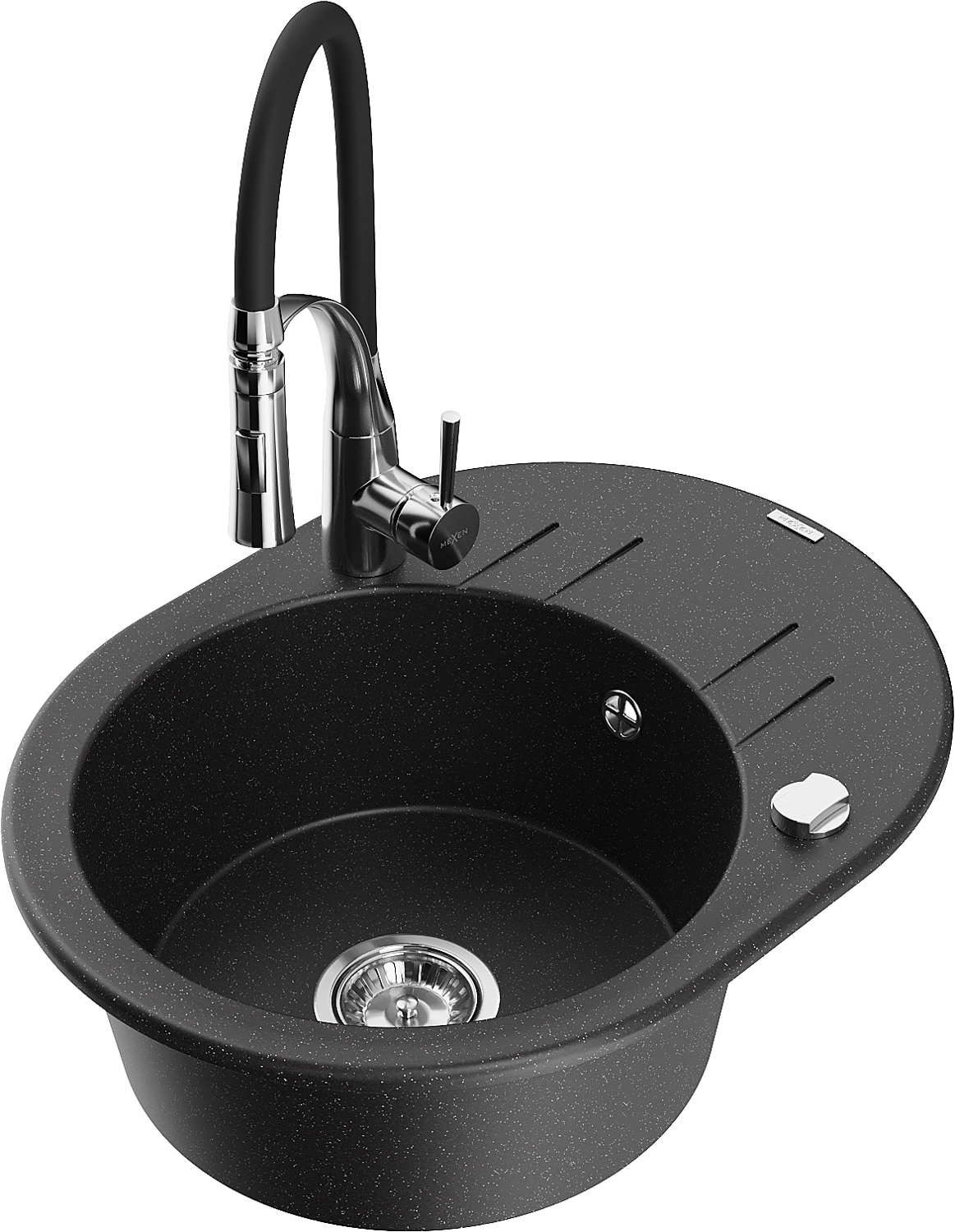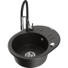 Mexen Kevin granitizlietne ar vienu nodalījumu ar noteces virsmu un virtuves jaucējkrānu Aster, melns/sudrabkrāsas