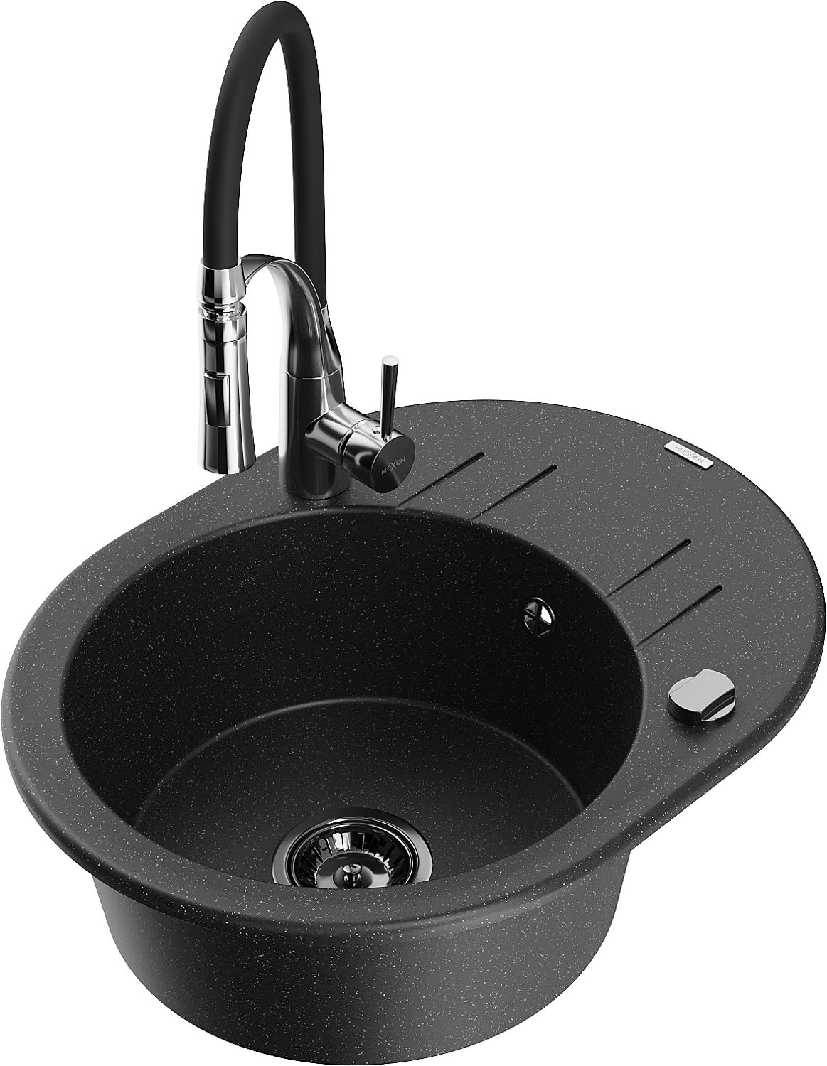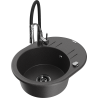 Mexen Kevin granitizlietne viena kambara ar noteku un virtuves jaucējkrānu Aster, melns/sudraba metāliks - 6517-73-73450-07-B
