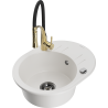 Izlietnei ir 2 daļēji izurbtas atveres ar diametru 35 mm, kuras var pašrocīgi izsist. Tās var izmantot, piemēram, šķidruma dozatora uzstādīšanai, kas novērsīs plastmasas pudeļu klātbūtni virtuvē un piešķirs tai elegantu apdari.