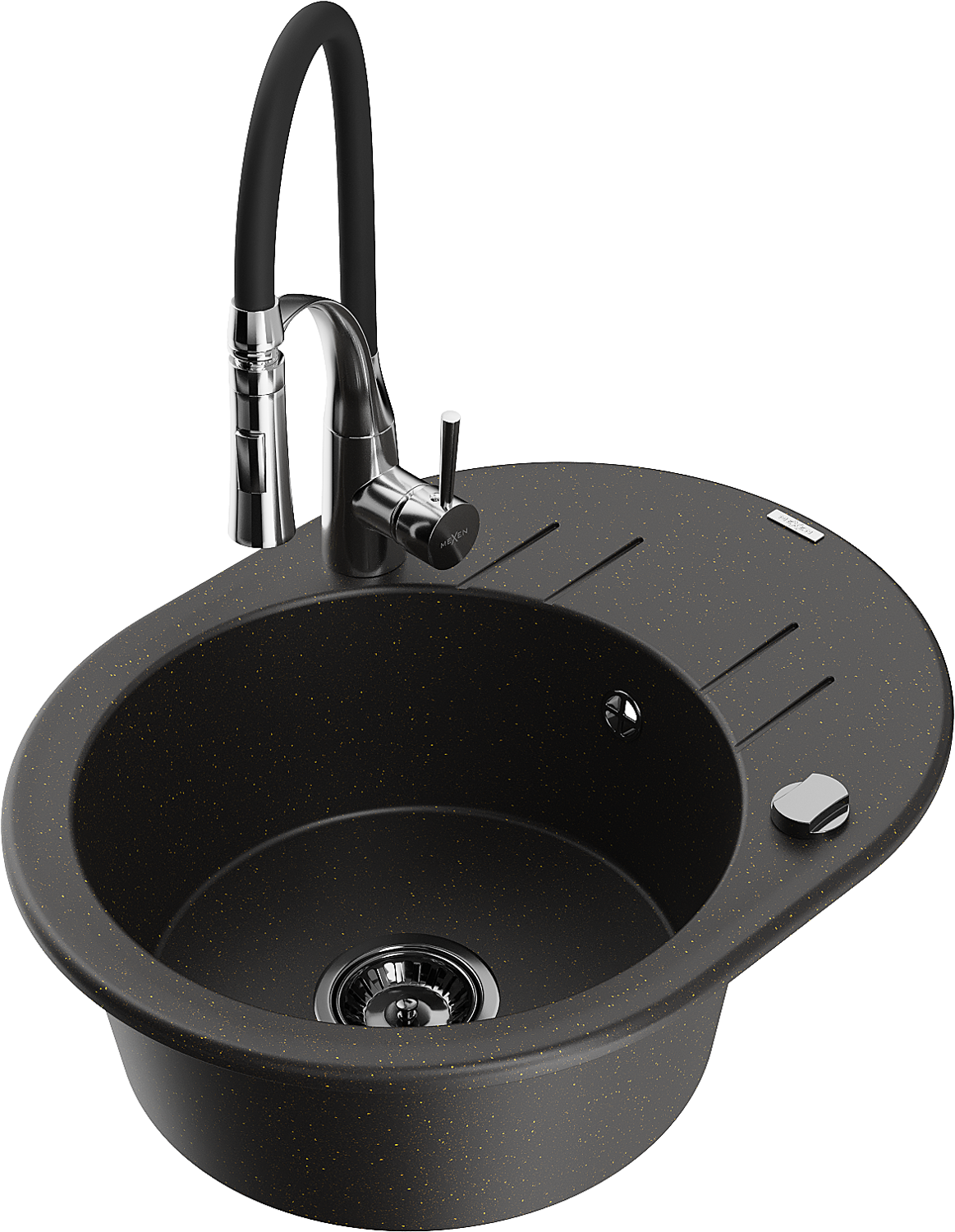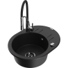 Mexen Kevin granīta izlietne ar vienu nodalījumu ar noteci un virtuves jaucējkrānu Aster, melna/zeltīta metāliski