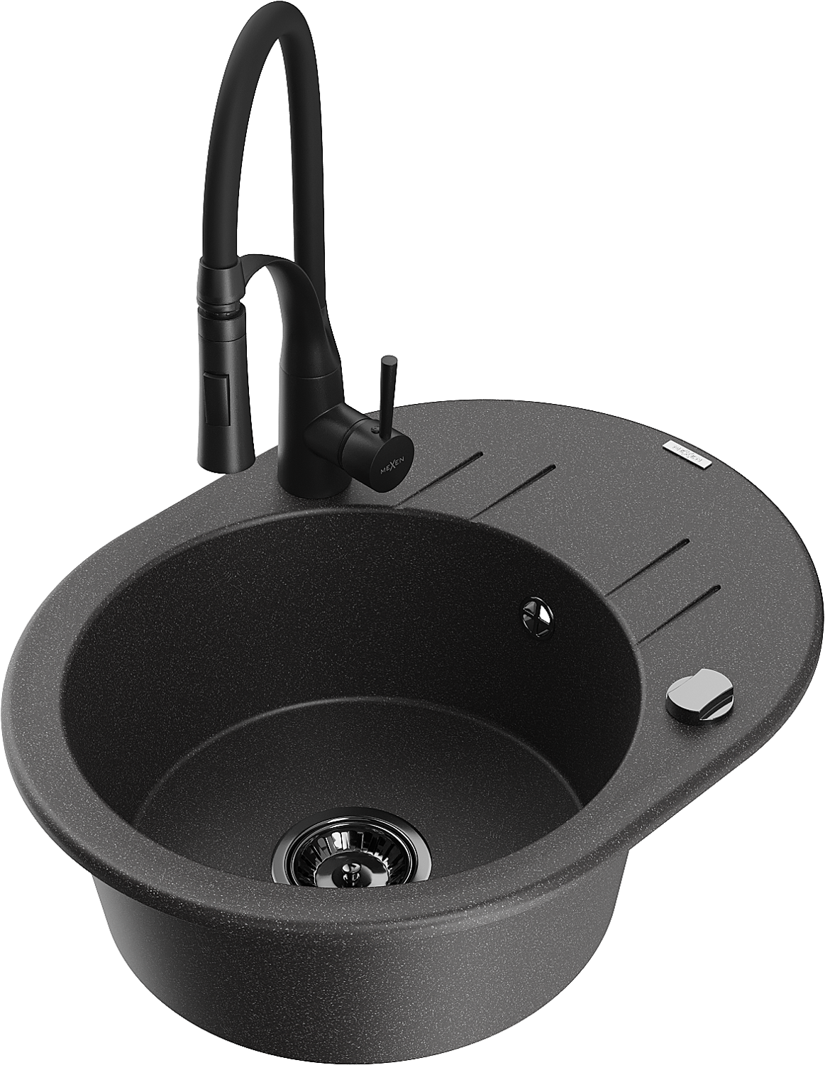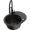 Mexen Kevin granīta izlietne ar 1 nodalījumu, ar notecētāju un virtuves bateriju Aster, melna ar plankumiem - 6517-76-73450-70-B