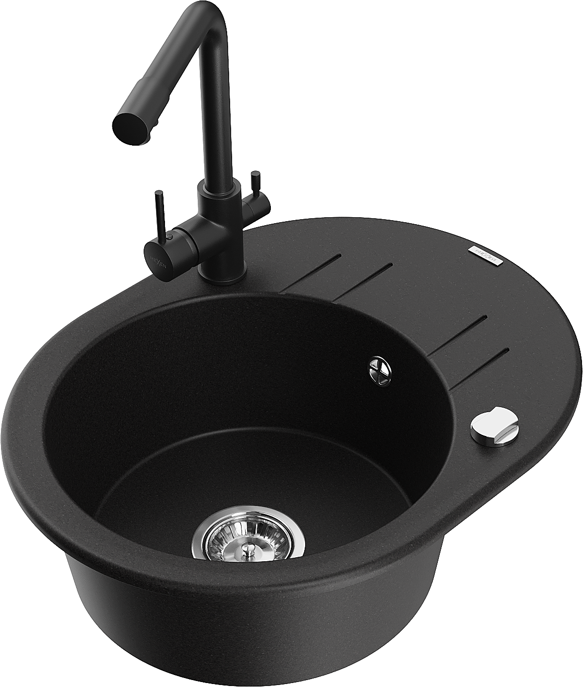 Mexen Kevin granitā izlietne ar vienu nodalījumu, noteces un virtuves krānu Duero, melns - 6517-77-671600-70