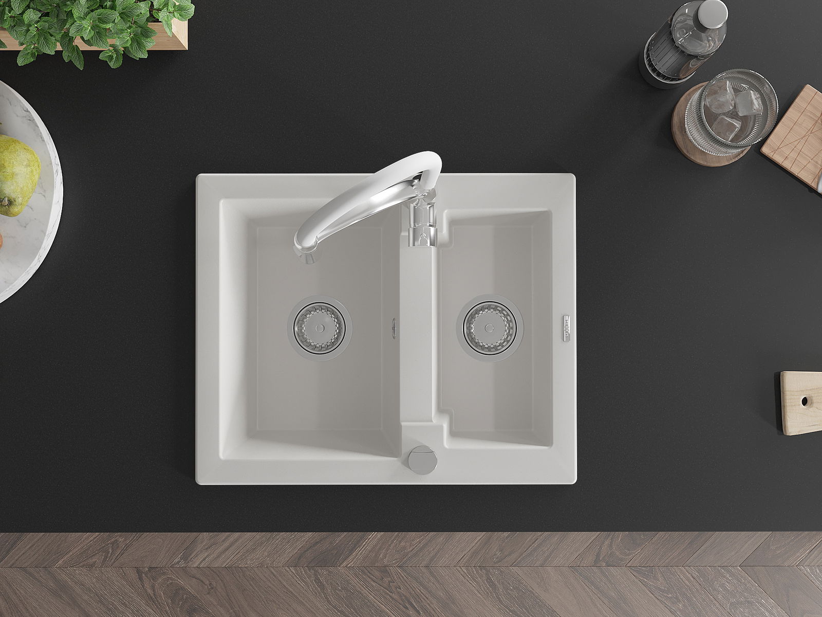 Mexen Carlos 1,5 nodalījuma granīta izlietne ar Aster virtuves jaucējkrānu, balta - 6518-20-73450-02