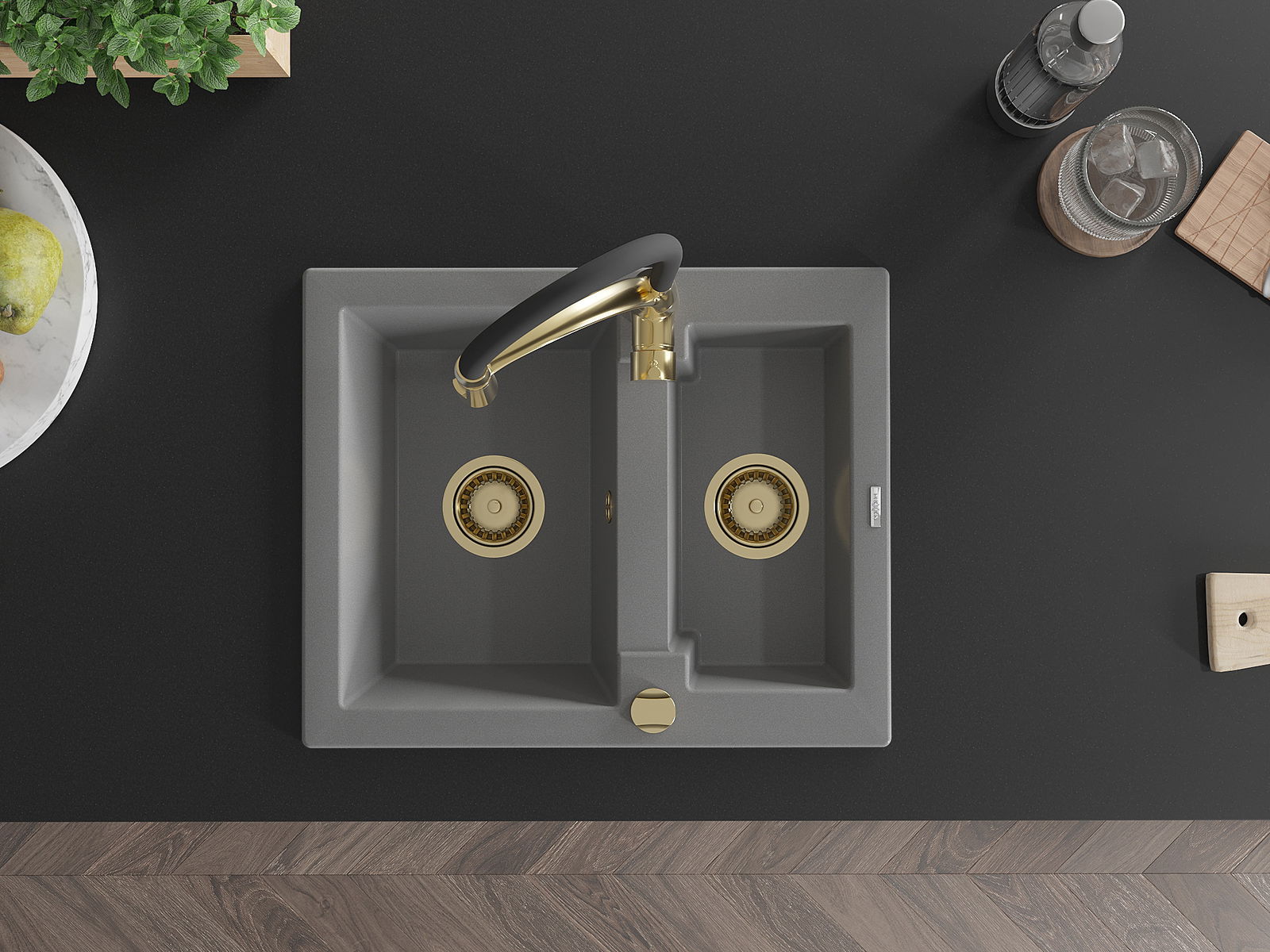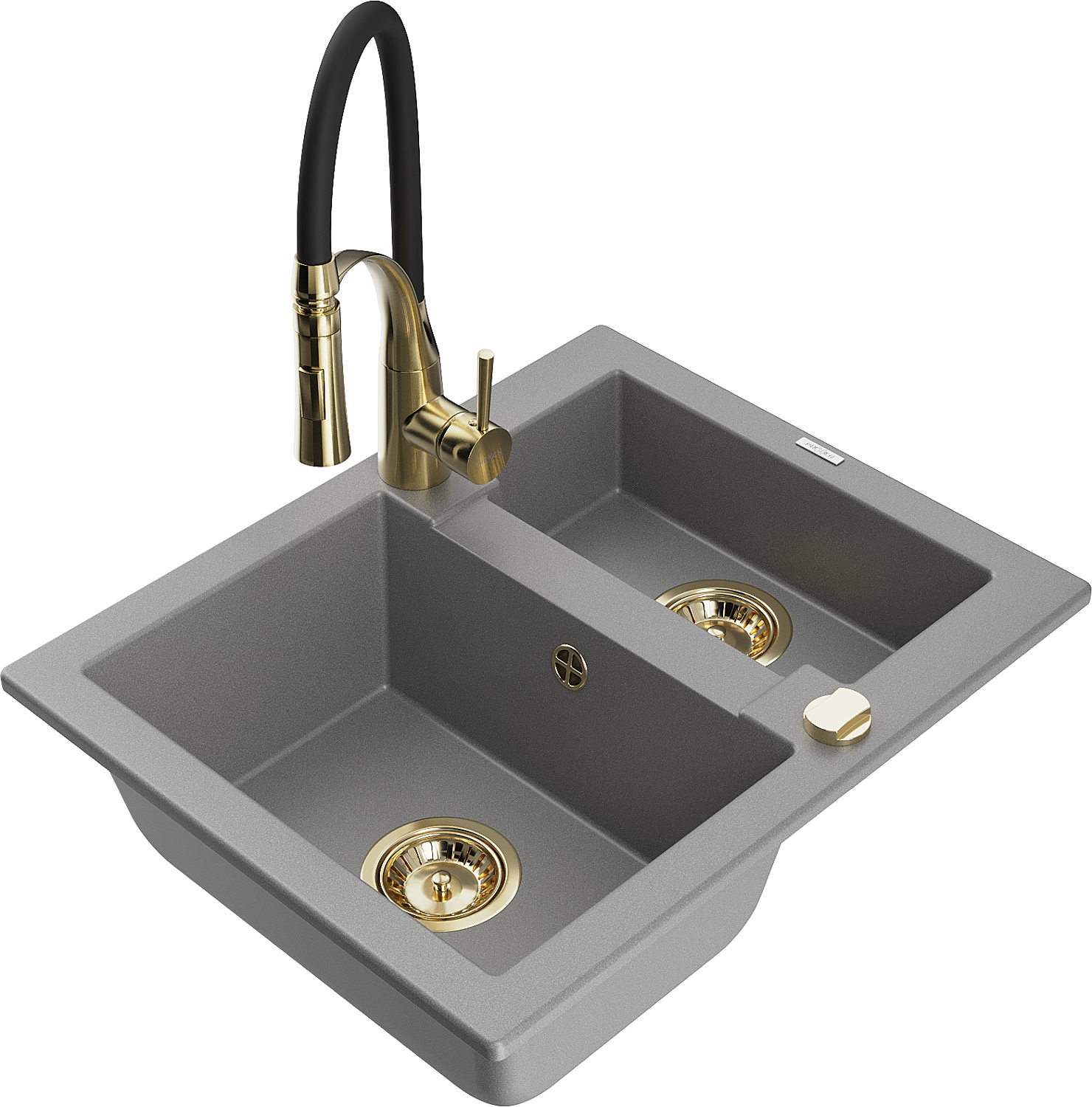 Mexen Carlos granitizlietne ar 1,5 kamerām un jaucējkrānu Aster, pelēks - 6518-71-73450-57-G