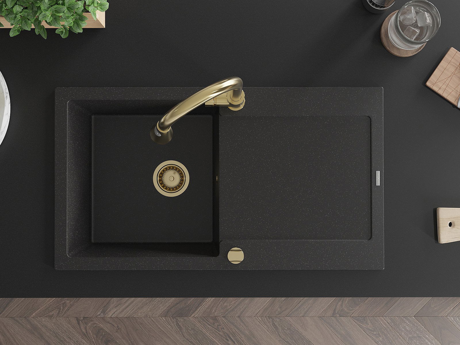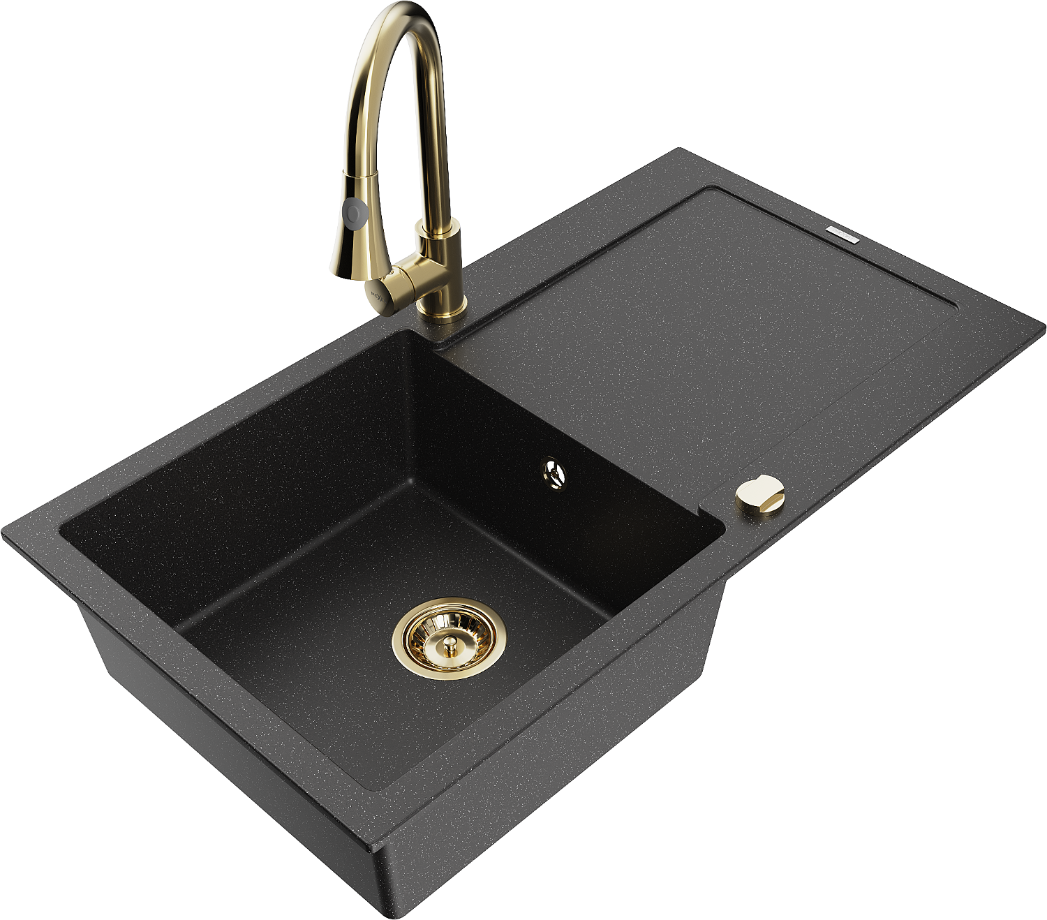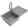 Mexen Leo 1-kameras granīta izlietne ar noteces zonu un virtuves jaucējkrānu Elia, melna/sudraba metāliks - 6501-73-670101-50
