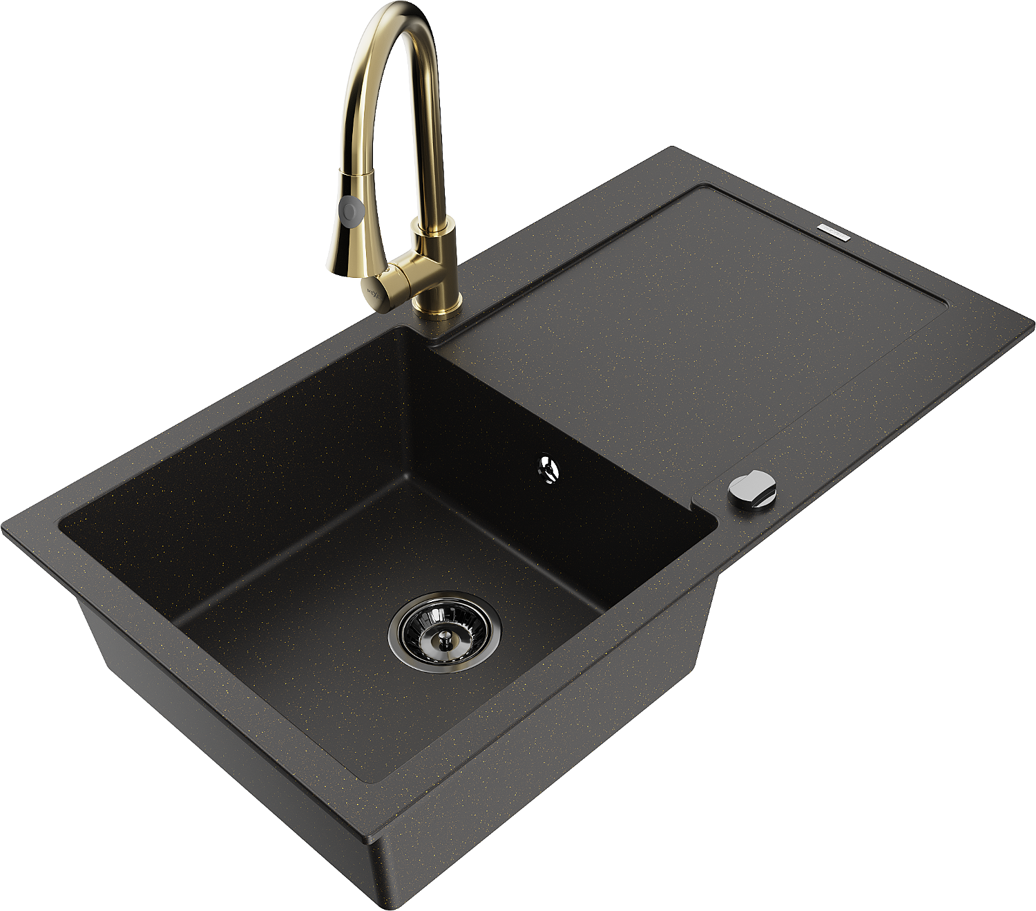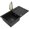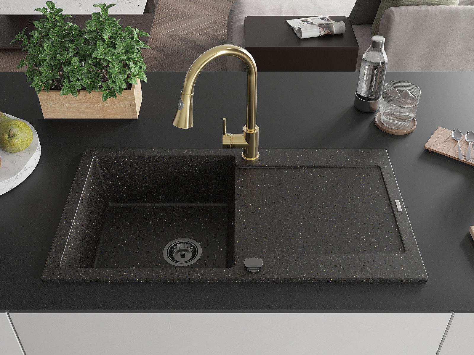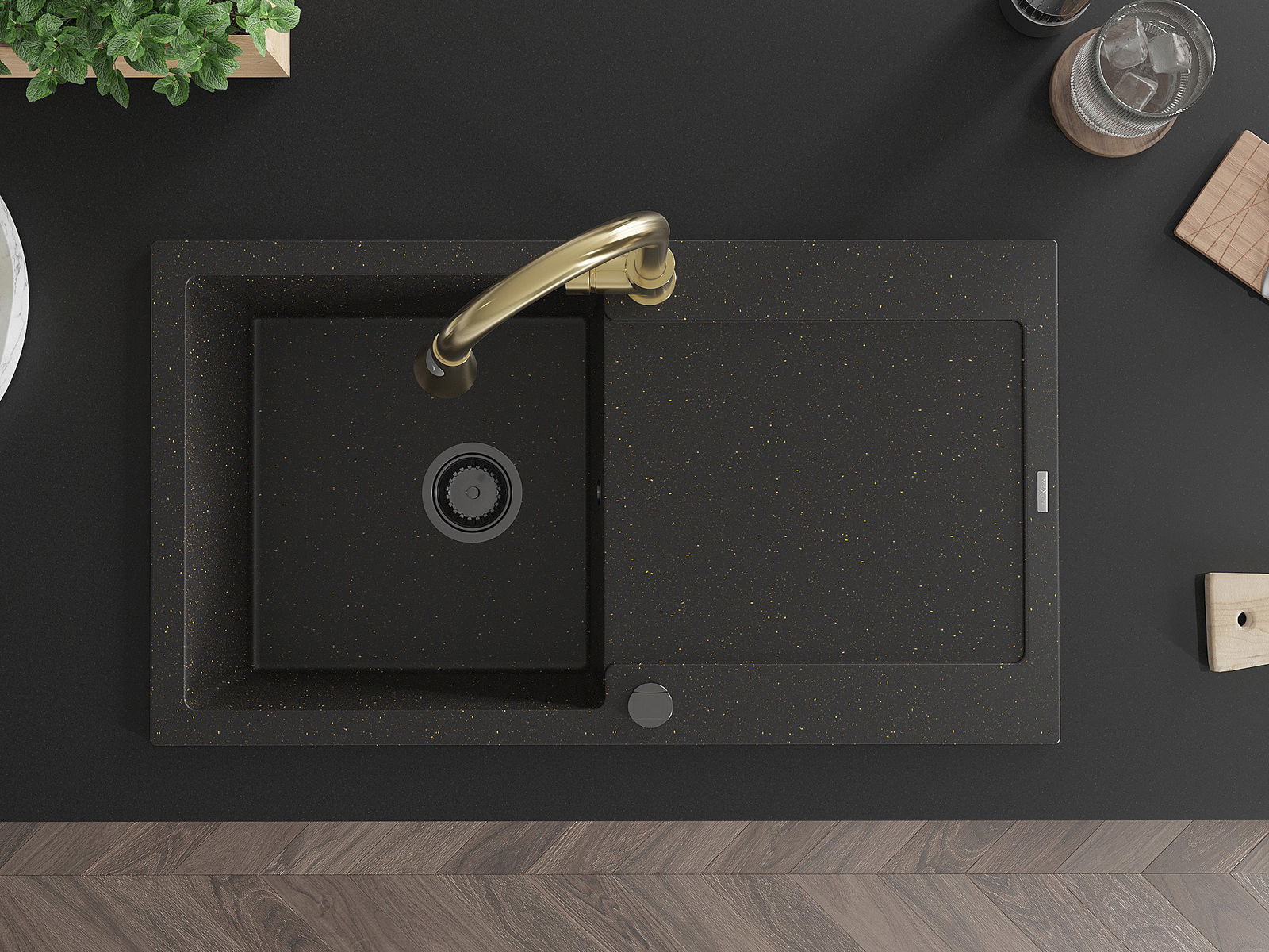 Mexen Leo granīta izlietne ar vienu nodalījumu un noteku, melna/zelta metālika - 6501-75-670101-50-B