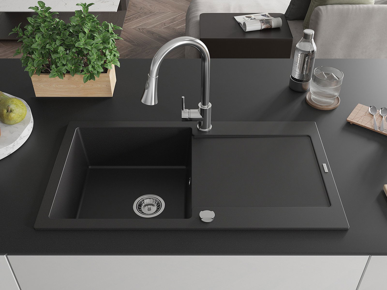 Izlietne ir izgatavota no augstas kvalitātes granīta. Tā ir eleganta un, galvenokārt, praktiska papildinājums jebkurai virtuvei, neatkarīgi no tās stila. Augsta kvalitāte un granīta izturība nodrošina ilgstošu lietošanu.