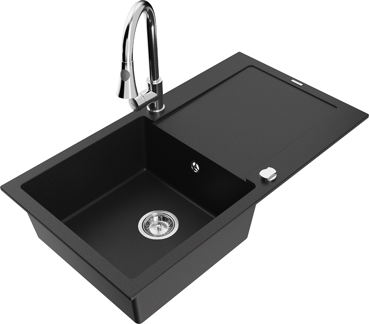 Mexen Leo granitizlietne ar vienu nodalījumu, ar noteci un virtuvē krānu Elia, melns - 6501-77-670101-00