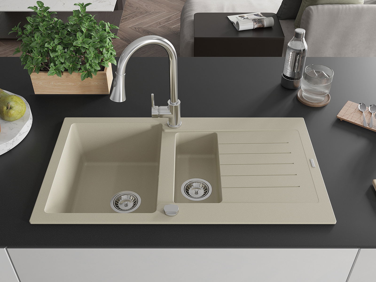 Izlietnes virsma ir izturīga pret traipiem un krāsas izmaiņām, tāpēc to ir viegli uzturēt tīru un tā saglabā savu krāsu ilgu lietošanas laiku. Estētiski un praktiski papildina jebkuru virtuvi.