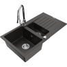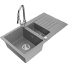 Mexen Matias granitē izlietne 1,5 nodalījumi ar noteku un virtuves jaucējkrānu Elia, balta - 6502-69-670101-00