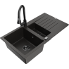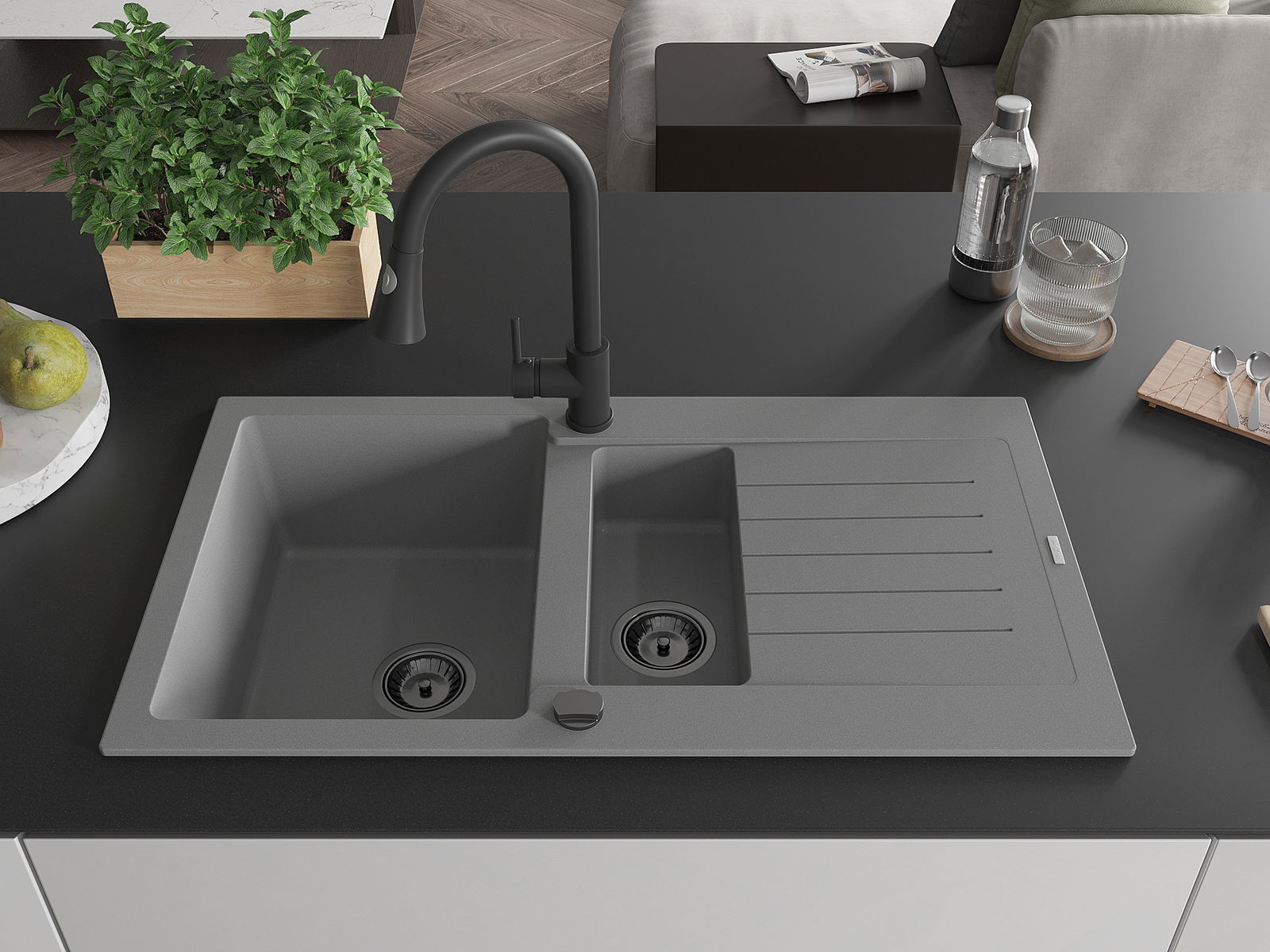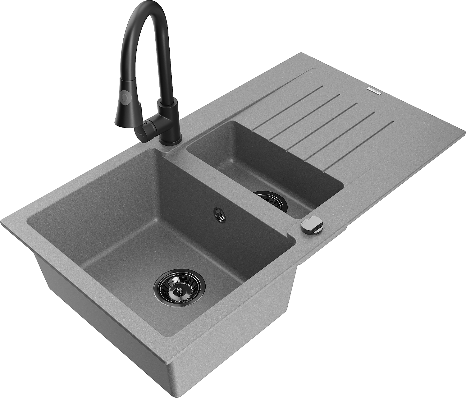 Mexen Matias 1,5 nodalējuma granīta izlietne ar noteku un virtuves jaucējkrānu Elia, pelēka - 6502-71-670101-70-B