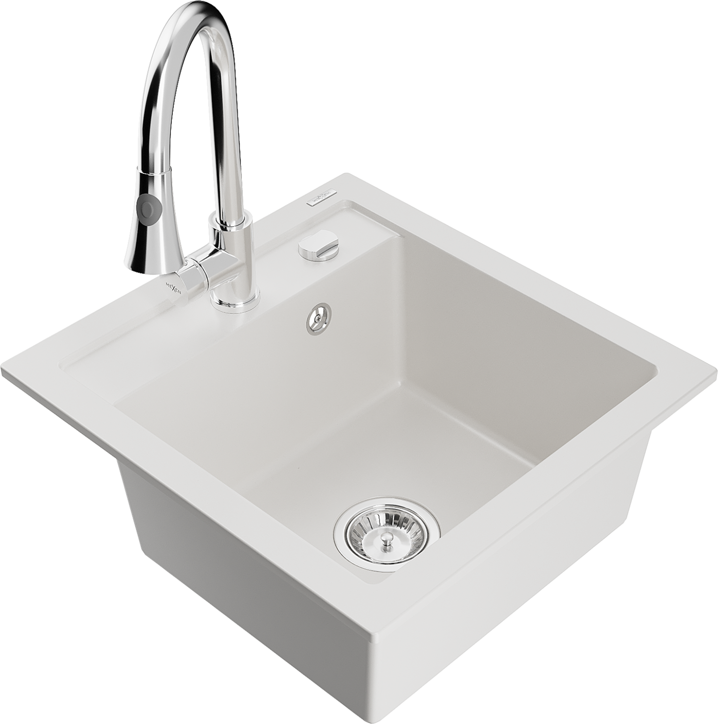 Mexen Vito granīta izlietne ar vienu nodalījumu un virtuves krānu Elia, balta - 6503-20-670101-00